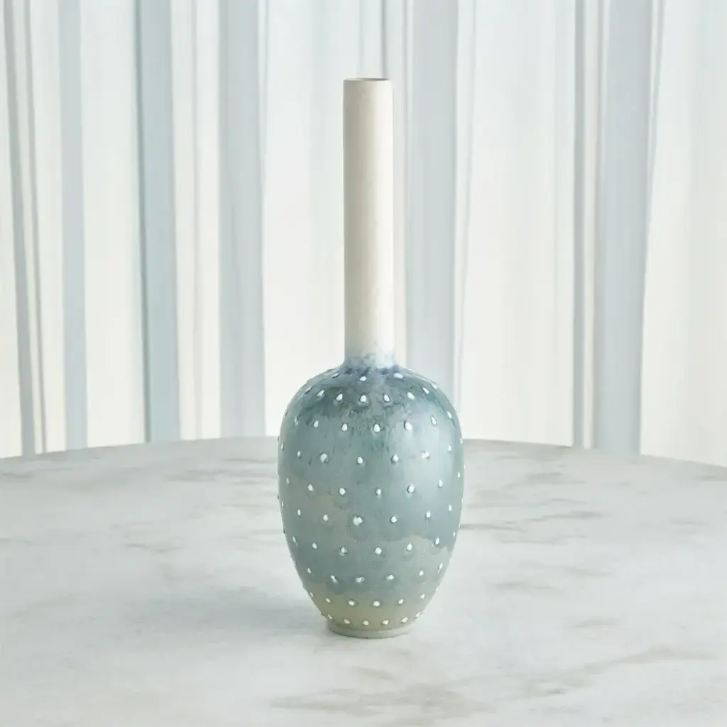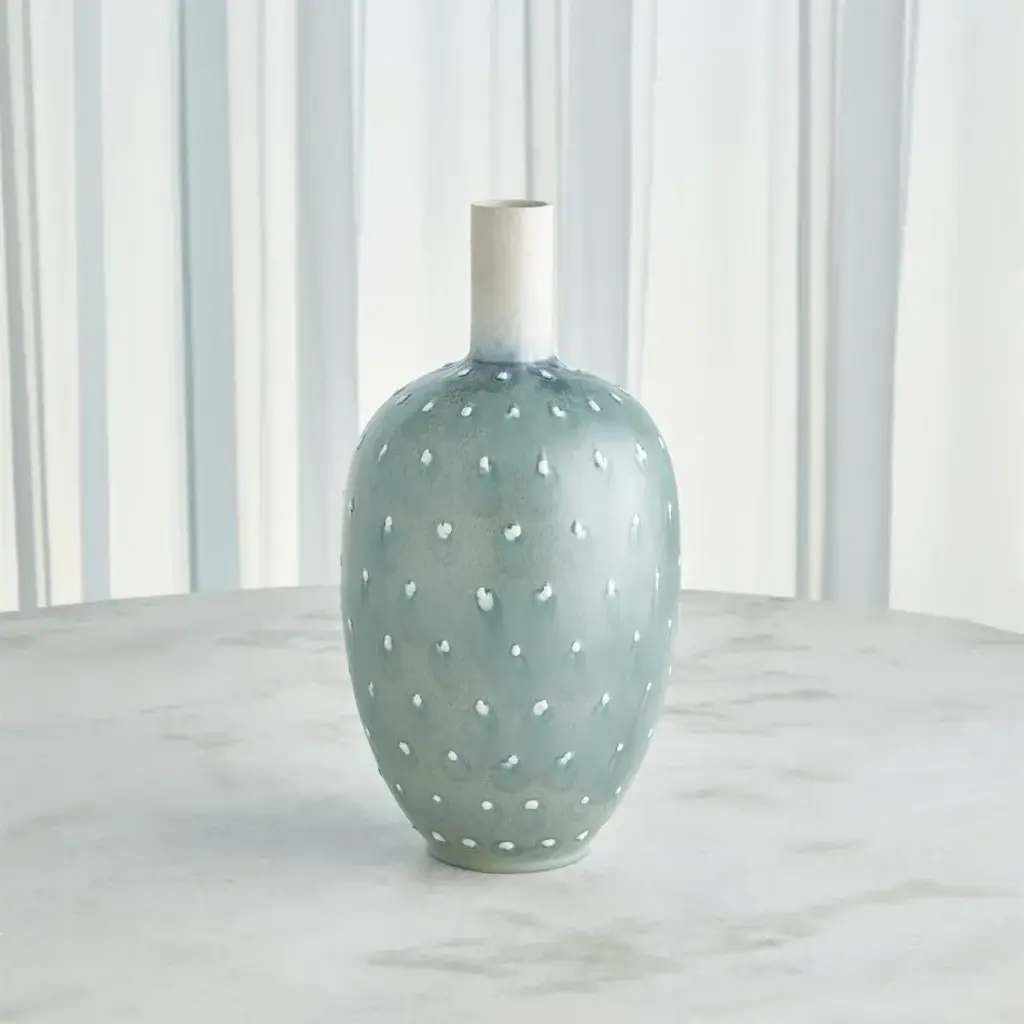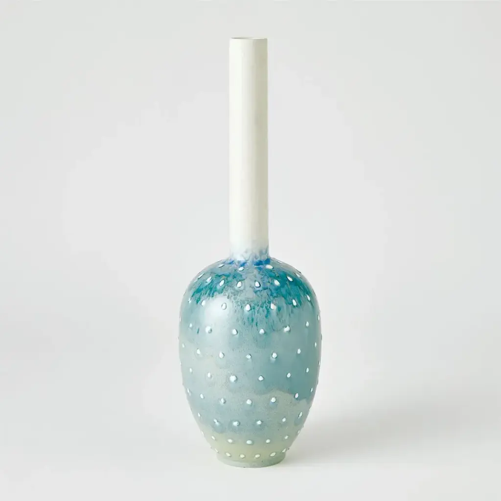 The Spotted Vases are slip-cast Portuguese ceramics with a lamb's ear reactive glaze finish and hand-applied dot details. From a fashion forward perspective, Global Views offers accessories, furniture, statement lighting, and an assortment of rugs and mirrors to add beauty and joy to your home.