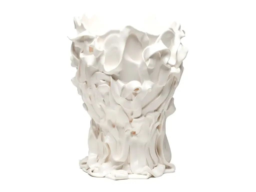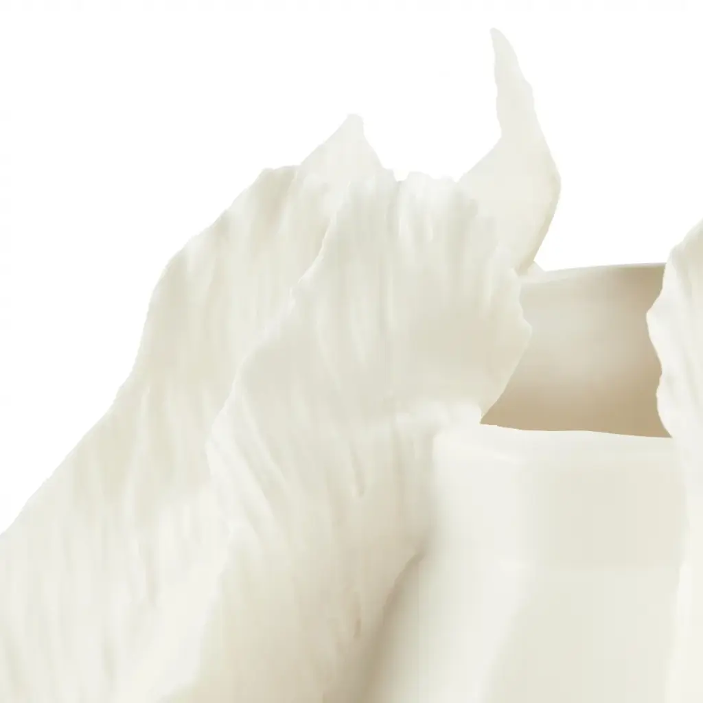 The romantic nature of the Spring Flower Vases invites you to display beautiful floral arrangements on any surface of your home. Delicate rippling petals, which resemble the natural folds of a Damask Rose, surround the outer surface of each vase to add intricate movement to its form. The Matte Glazed Blanc de Chine finish adds a soft touch of elegance. Offered in two sizes, they can be used individually or paired together for a graceful decorative display.