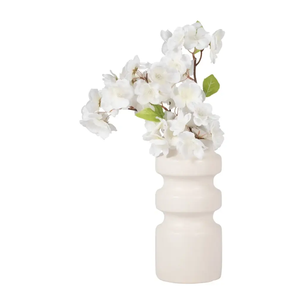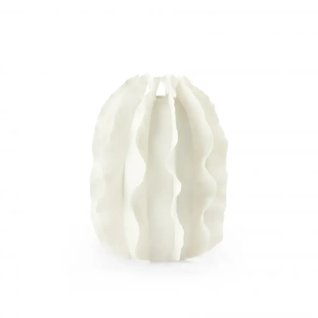 The romantic nature of the Spring Flower Vases invites you to display beautiful floral arrangements on any surface of your home. Delicate rippling petals, which resemble the natural folds of a Damask Rose, surround the outer surface of each vase to add intricate movement to its form. The Matte Glazed Blanc de Chine finish adds a soft touch of elegance. Offered in two sizes, they can be used individually or paired together for a graceful decorative display.
