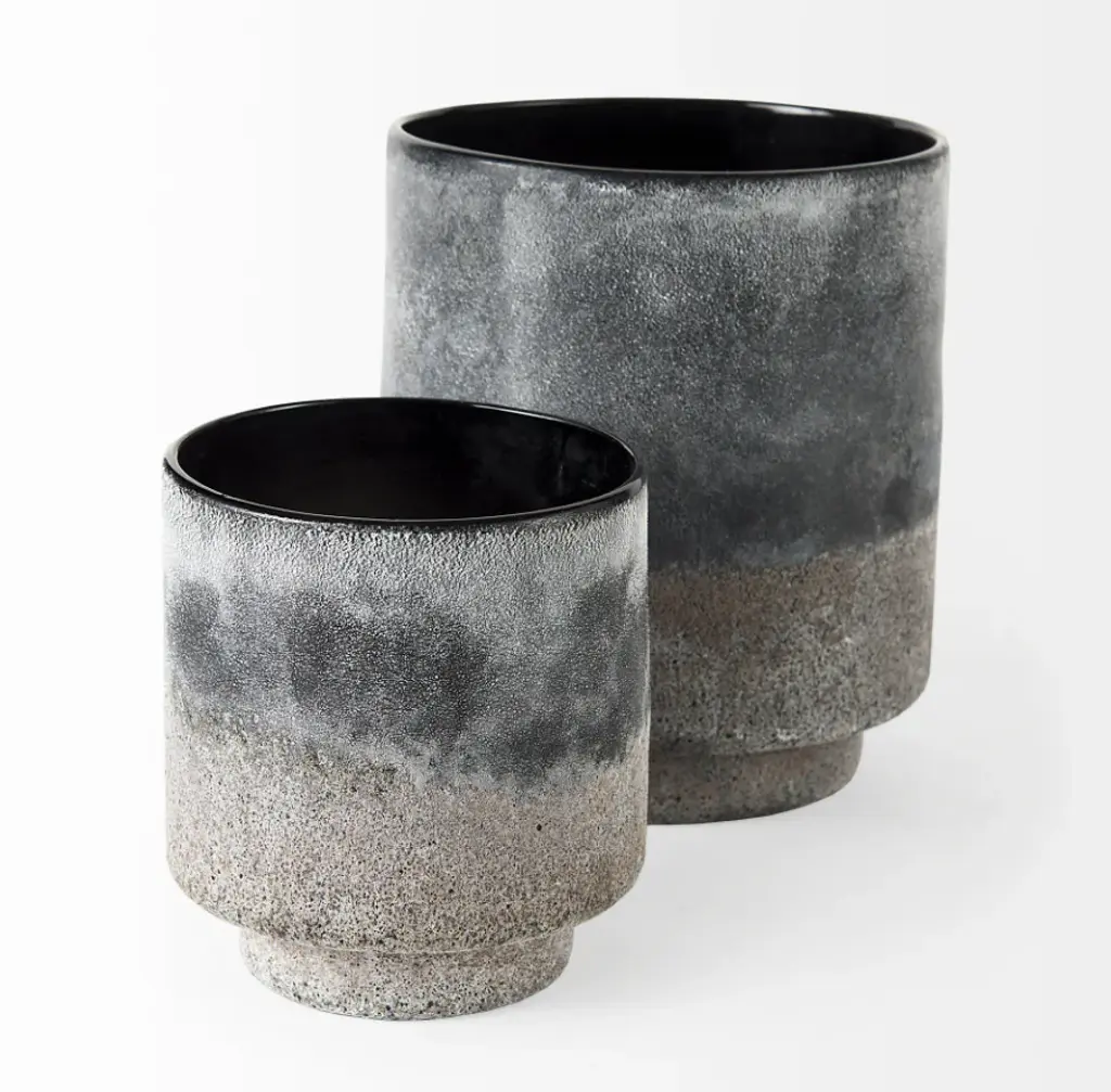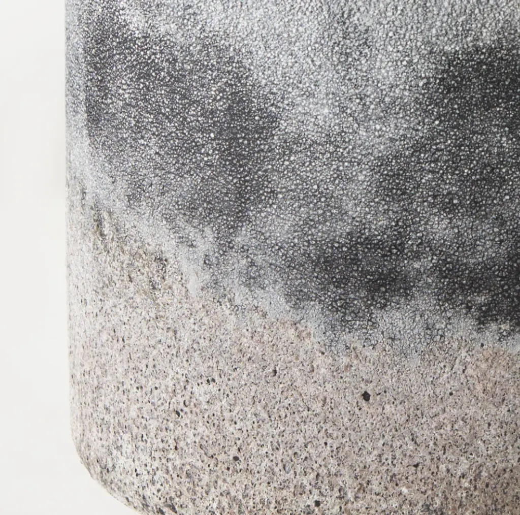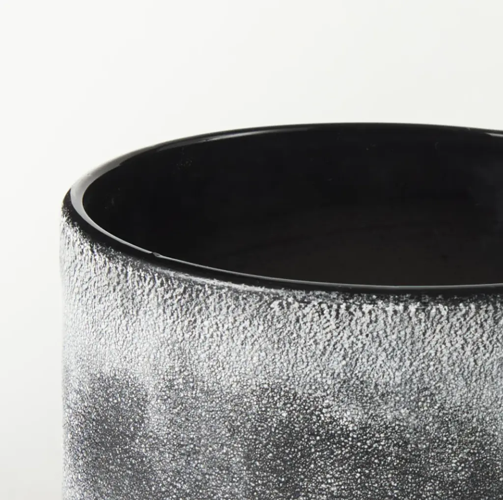 The Squally vase showcases an Ombre design with a speckled black and light brown textured finish. Its unique appearance adds a gorgeous addition to any décor setting.