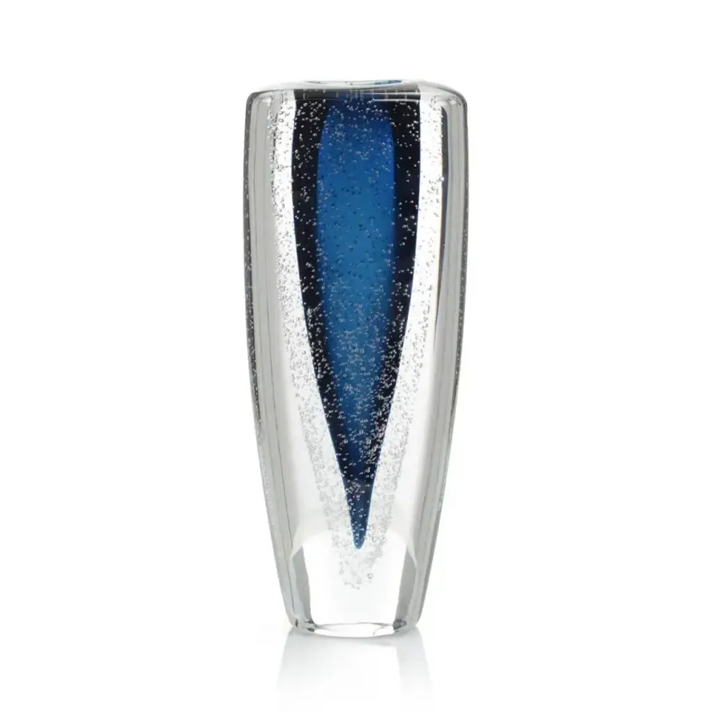 Polish art glass. The incased color is accomplished by blowing colored glass in layers. This vase is hand crafted from thick layers of clear & colored art glass. This artisan process produces substantial and important pieces. From a fashion forward perspective, Global Views offers accessories, furniture, statement lighting, and an assortment of rugs and mirrors to add beauty and joy to your home.