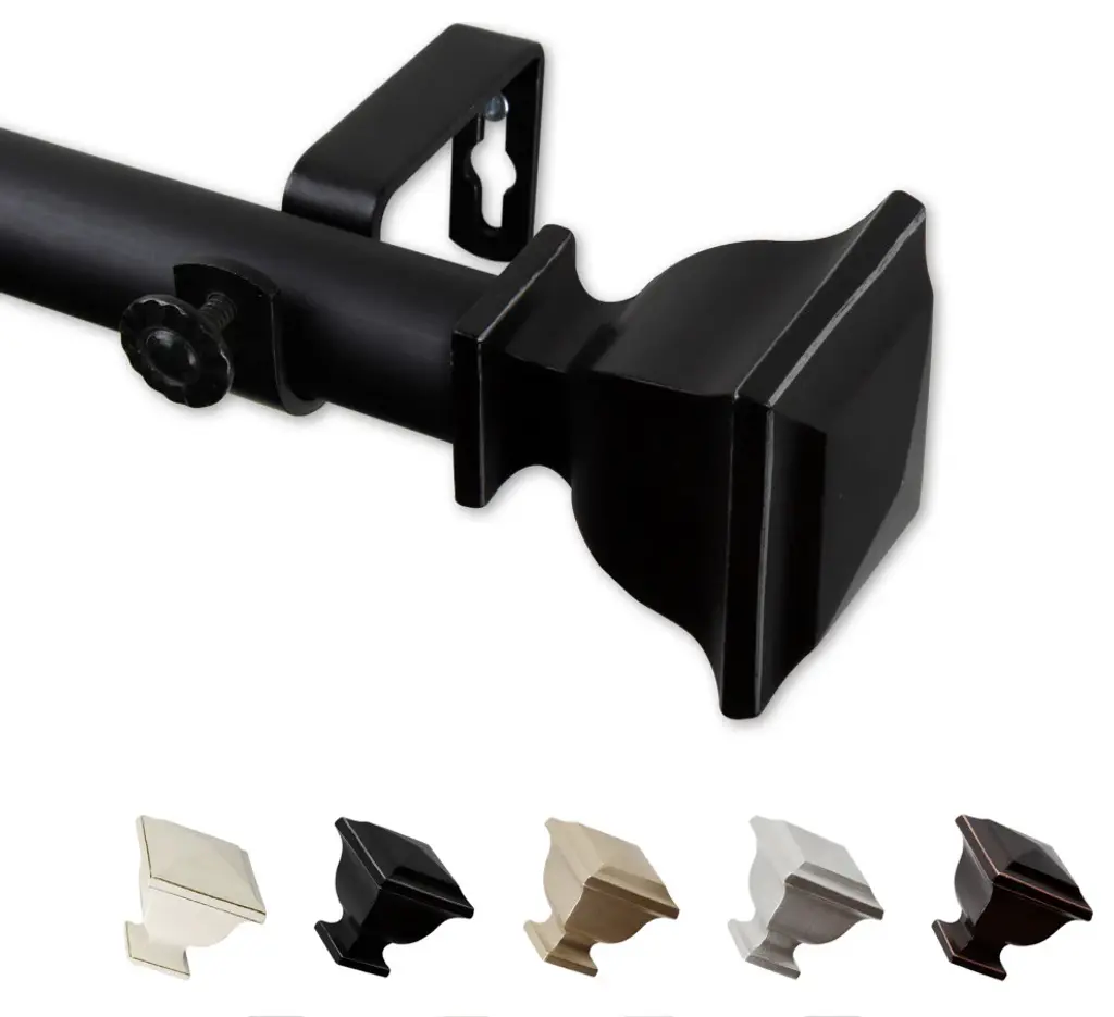 Square Urn Adjustable Single Curtain Rod Set With Rings, 5/8", Black, 84"-120"