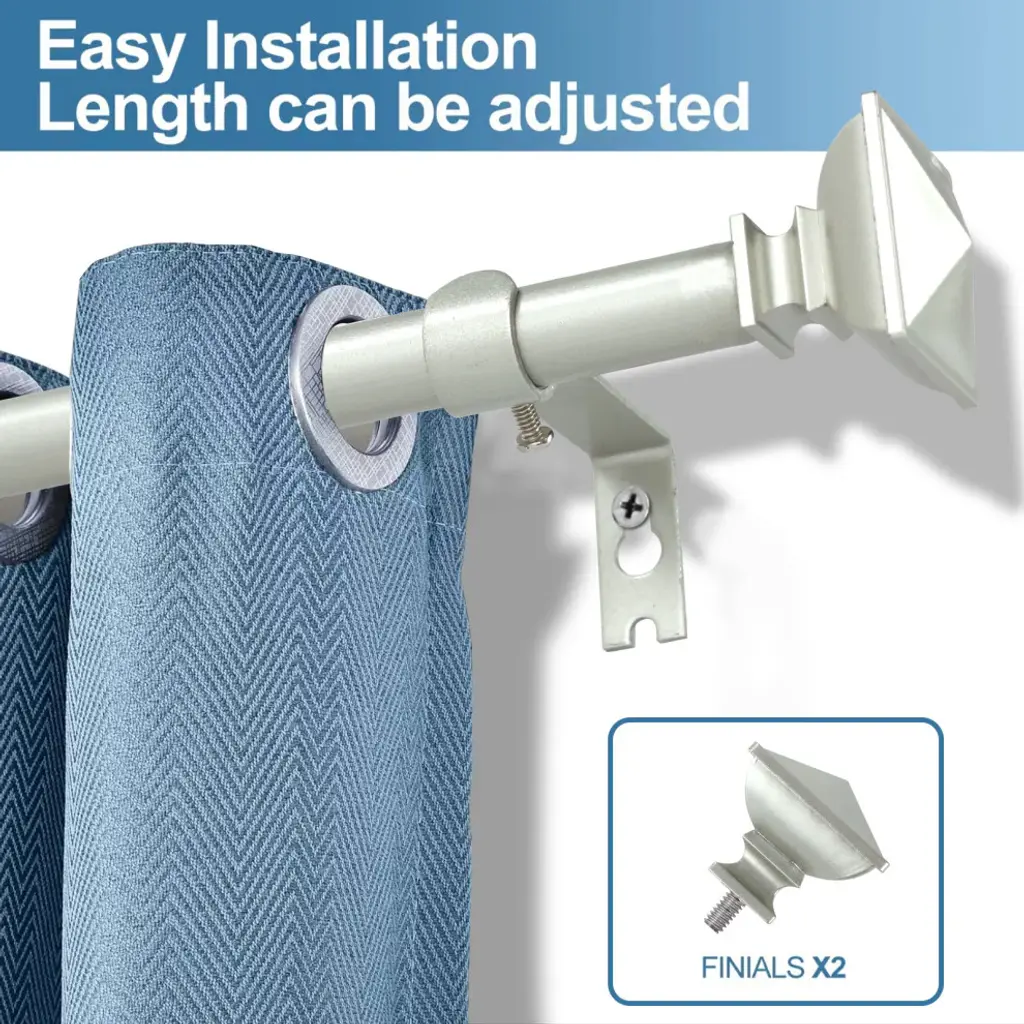 Square Urn Adjustable Single Curtain Rod Set With Rings, 5/8", Pewter, 84"-120"