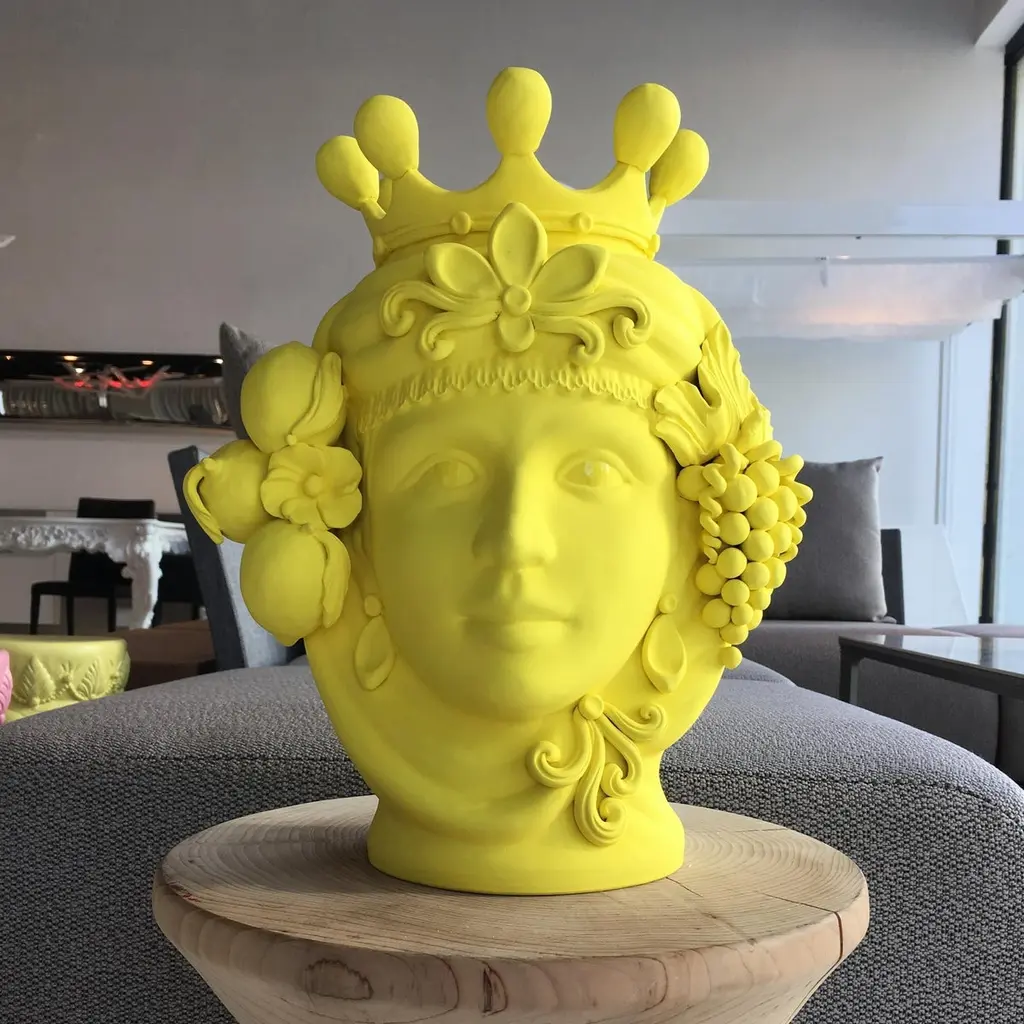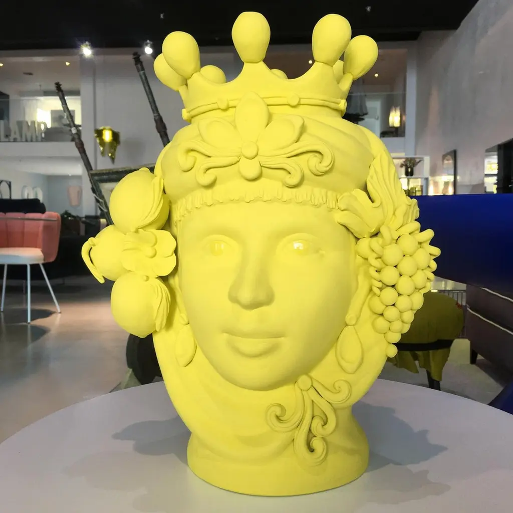 Scroll down and click "view all from Seller" to see more than 400 other unique products. (2)This unique work of art is sure to make a statement in an eclectic or modern decor, where it will be an ideal vessel to display floral compositions or as a statement sculpture. Its design is inspired by the Moorish-inspired sculptures in Sicilian ceramic tradition. The delicate features of the woman's crowned head are accented with flowers and fruit that are handcrafted and rendered with naturalistic details.Made in Italy:Made in Italy furniture means design, quality, style and sophistication.The typical elegance of Italian design can be found in this piece. No wonder that the world famous designers like Philippe Starck, Karim Rashid, Piero Lissoni, Rodolfo Dordoni and many others put their signature next to Made in Italy.