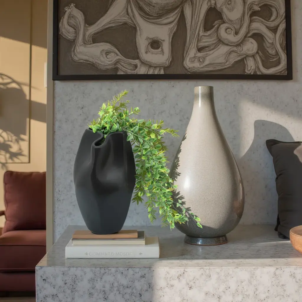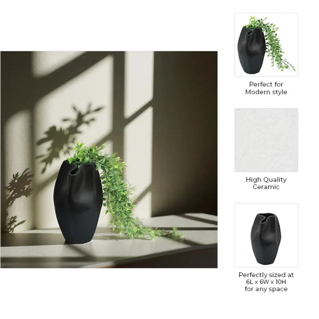 Enhance your home or office with this modern ceramic and stoneware vase, designed to bring a sophisticated touch to any space. Featuring a sculptural silhouette, this decorative vase makes a bold statement whether displayed alone or paired with fresh, dried, or artificial flowers. Its durable construction ensures long-lasting use, while the smooth finish adds an elegant, contemporary appeal. Perfect for living rooms, offices, bedrooms, or entryways, this versatile accent blends seamlessly with modern, minimalist, and eclectic decor styles. Whether used as a centerpiece or a subtle styling element, this vase elevates your interior with artistic charm. Add a refined touch to your decor with this beautifully crafted vase.