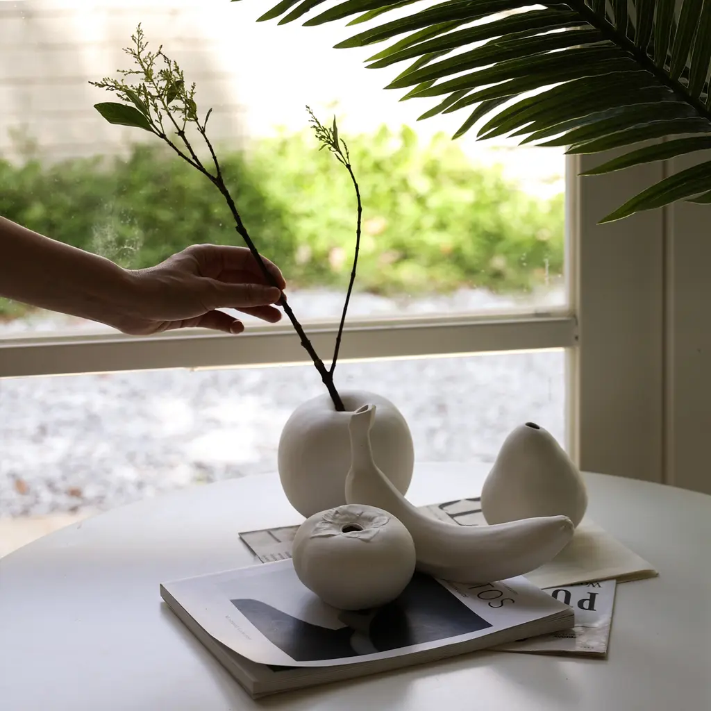 Looking at an apple-shaped vase a day keeps the boredom away. The haoshi Still Vase Apple transforms a home accessory into a fun sculpture that will surely become a conversation starter when guests come by to visit. Featuring a realistic fruit shape, this vase offers a playful solution to create a focal point in a room, especially if you use it to display vibrantly colored flowers that contrast the matte white finish. Crafted by skilled artisans, every vase is handmade from quality ceramic. The vase is fired in a kiln at 1260°C to ensures not only the durability and sturdiness of the material, but also the preservation of the gorgeous apple texture. The interior is glazed, to allow you to fill the vase with water and show off your favorite flowers. Great as a gift, the haoshi Still Vase Apple symbolizes health and peace. Discover the other Still vases that recreate different fruits.