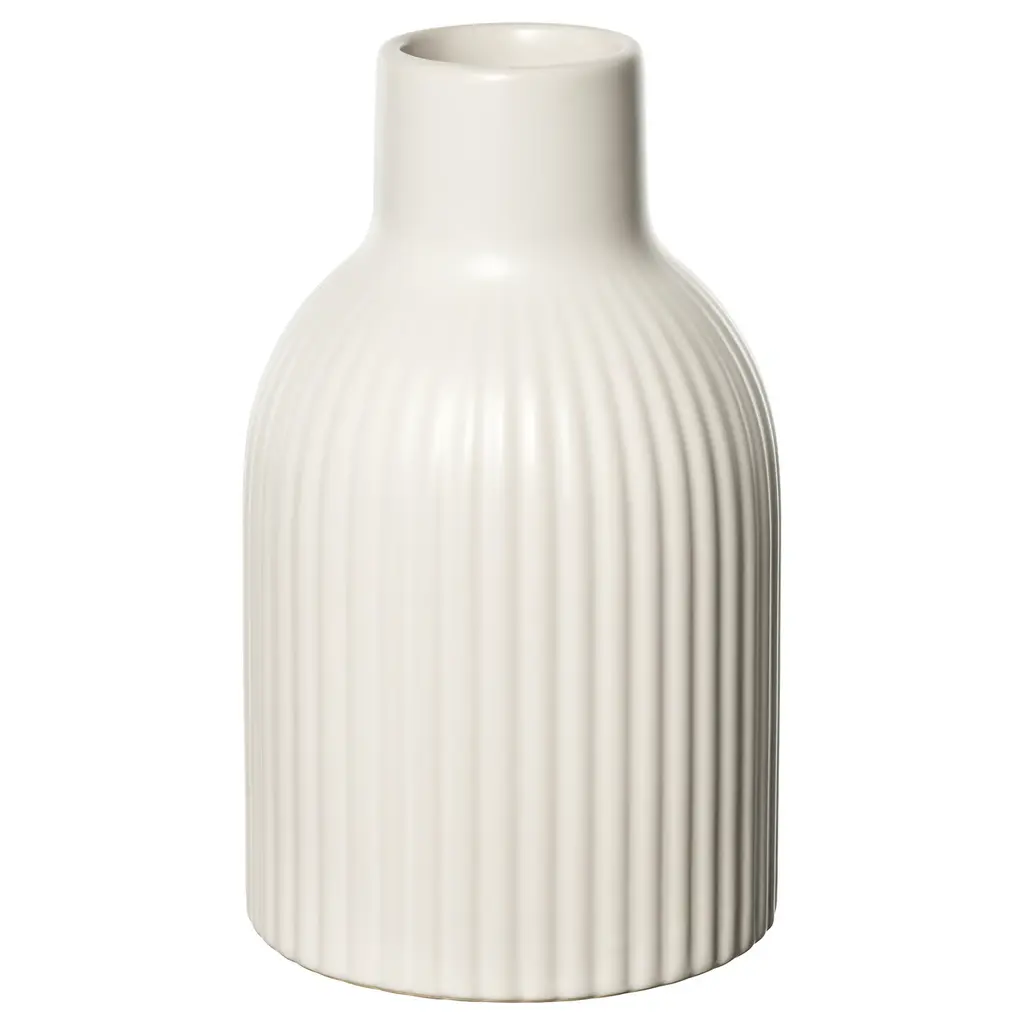 STILREN Vase - white 4 ¾ ". Use the vase with flowers or alone, as a beautiful object in its own right. The vase's slightly closed shape and narrower opening keep the bouquet beautifully gathered.