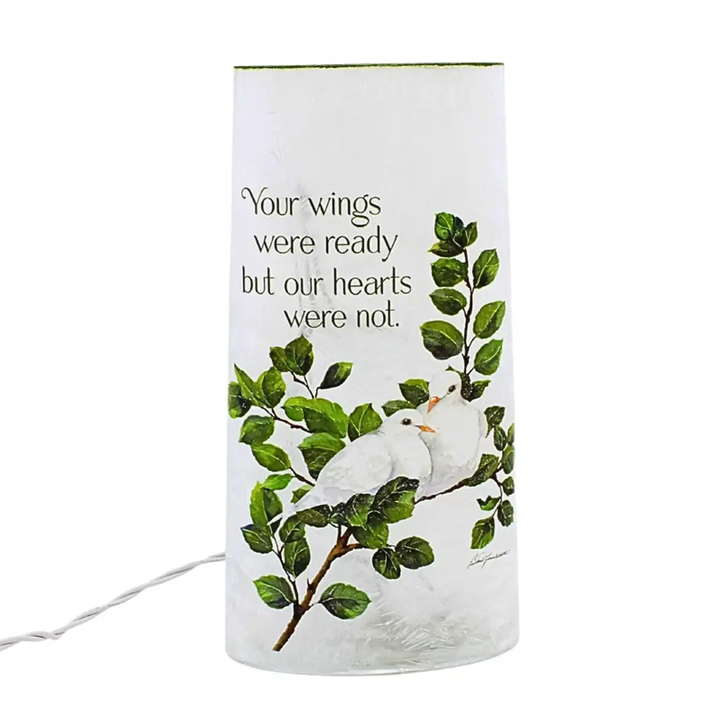 Stony Creek 10.0 Inch Dove Love Pre-lit Large Glass Vase Lighted Glass Accent , Bereavement Bereavement Birds Remembrance (1pc)