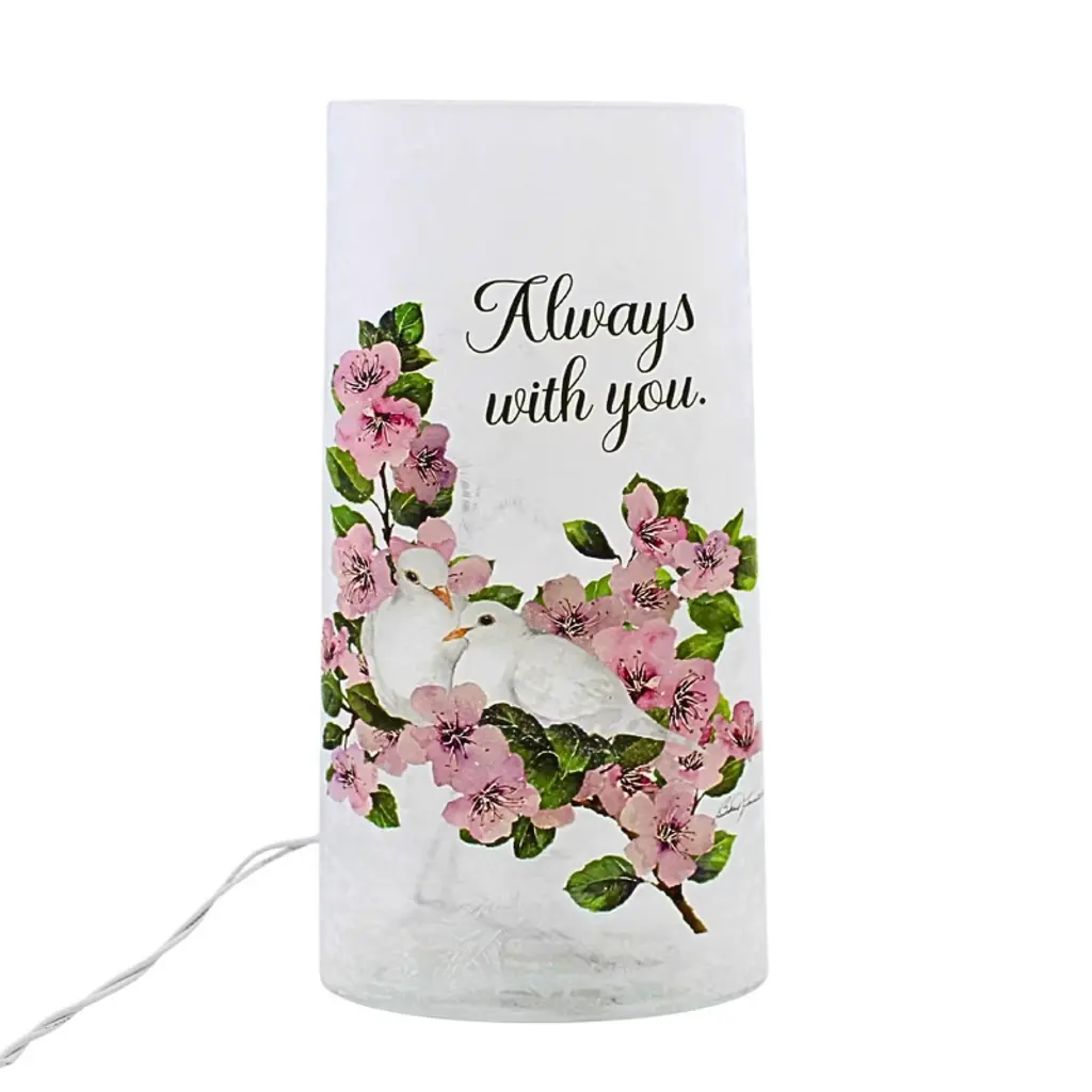 Stony Creek 10.0 Inch Dove Love Pre-lit Large Glass Vase Lighted Glass Accent , Bereavement Bereavement Birds Remembrance (1pc)