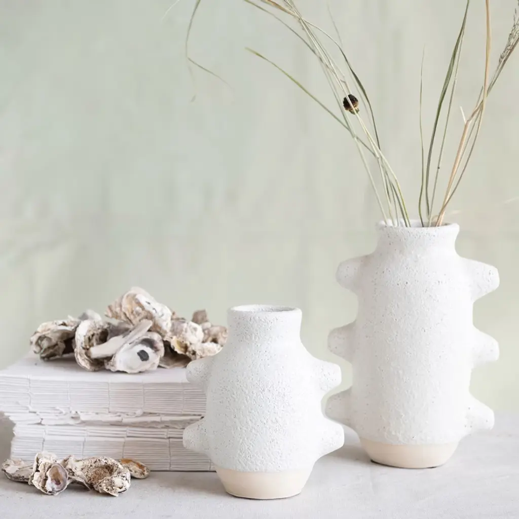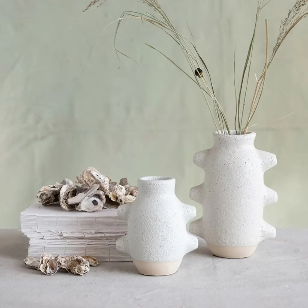 Storied Home Abstract Stoneware Vase, White Volcano Finish