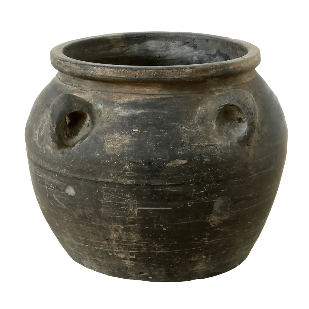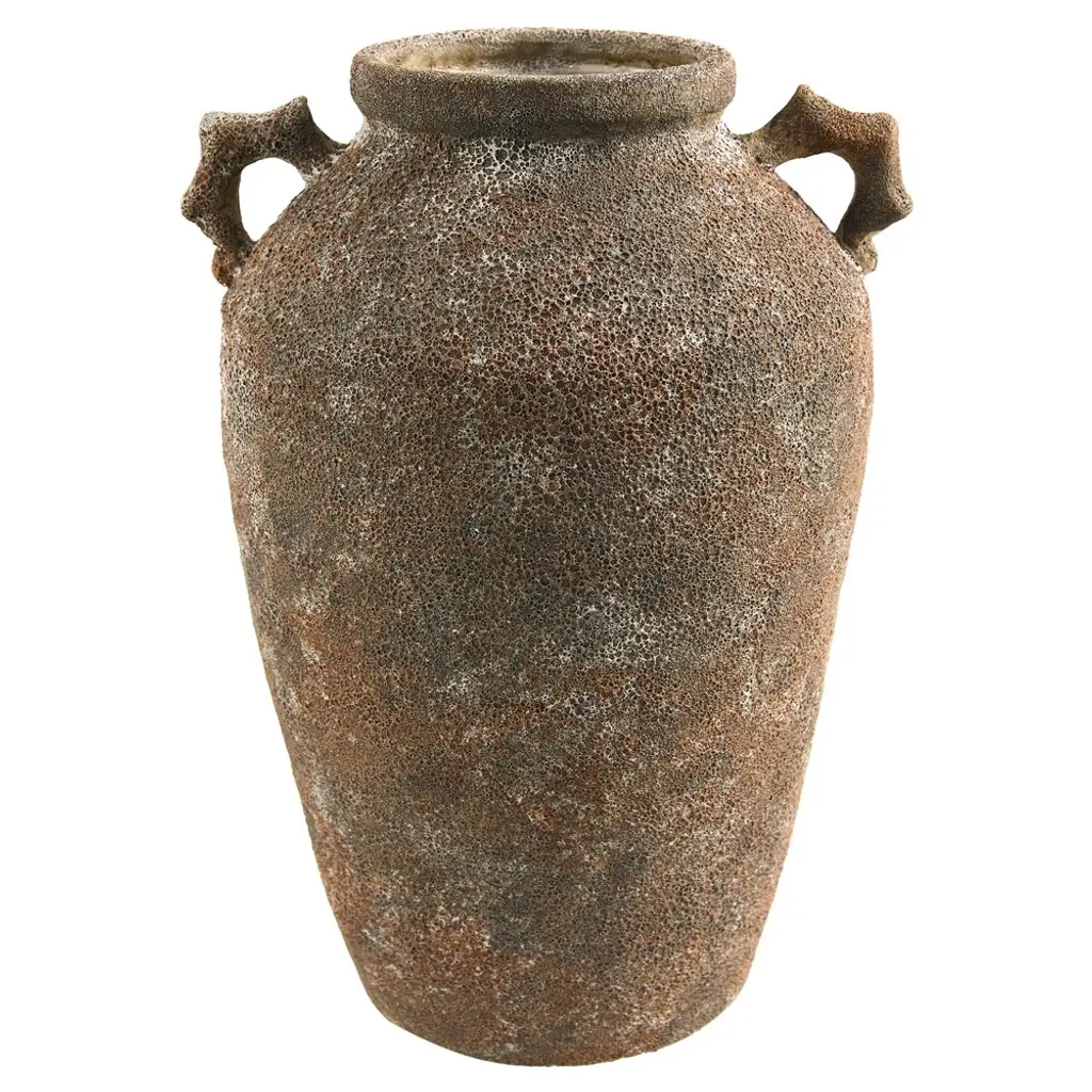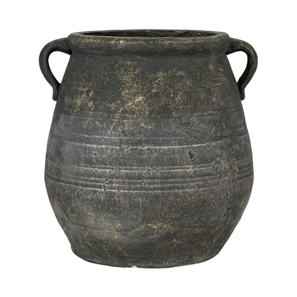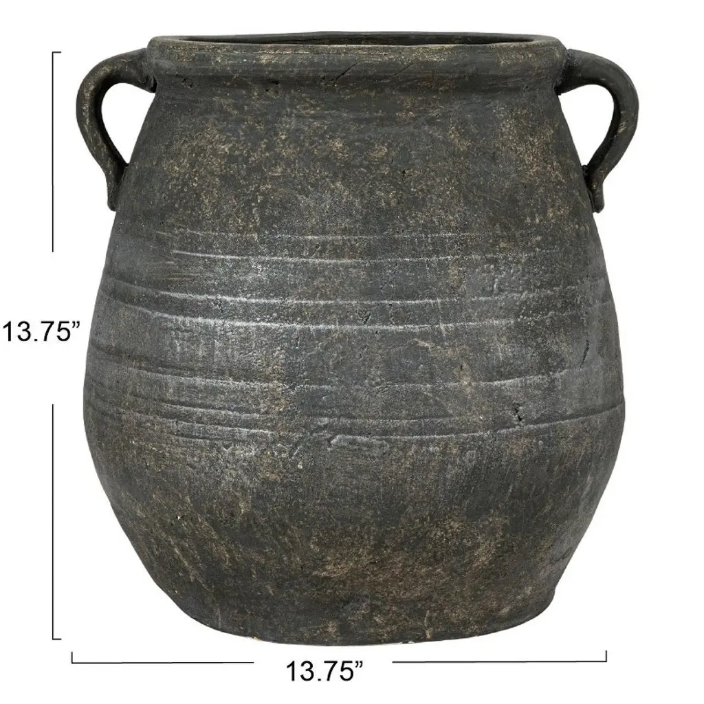 This grey terracotta urn is a charming and versatile addition to the home or garden. Its washed grey finish gives it a rustic, moody feel while its shape and distressed texture add hint at its classic Mediterranean style. Place on your patio to display cypress, in your living space with a potted fig or olive tree, or in the kitchen with dried lavender stems. This planter can be used with living, dry, or faux flowers and plants. Terra-cotta is a naturally absorbent material but note, there is no drainage hole in this product. It can be placed indoors or outdoors, complementing any space with its natural and vintage look.