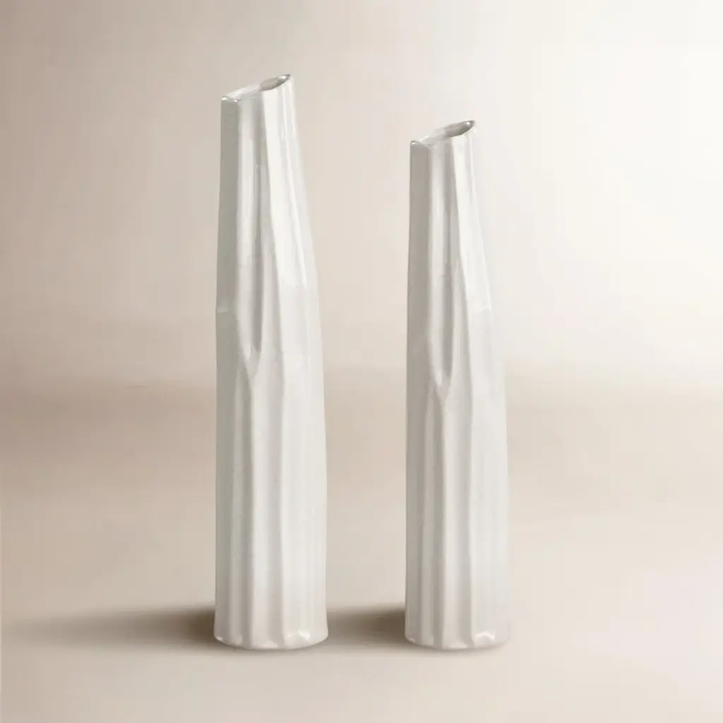 "Strato tre" Vase in Tuscan Alabaster by Andrea GrecucciDimensions: 8.5 cm D x 27 cm H3.35” D x 10.63” H Edition of 20Material: Alabaster from Volterra Italy.Designer: Andrea Grecucci"Strato tre" is part of a 3 vase set from the "Neocene" series created by Andrea Grecucci in 2021. The vases are sculpted out of monolithic blocks of the autochthonous Alabaster only found in the Volterra region of Tuscany, Italy. The artist has attempted to portray the sedimentary nature of Alabaster and glorify the tremendous amount of time it has taken for geological events to give life to this beautiful material. The Neocene series is a project developed as part of the group "Materie Prime" from Italy with which the artist is affiliated. The group's main ethos is to strategically select artisanal niche sectors struggling in today's current economic landscape; and giving them a breath of new life by creating unique pieces and limited editions. These collectibles aim to appreciate ancient artisanal practices, as in this case the "Alabastrai di Volterra" (alabaster artisans of Volterra) and bring their crafts and practices to the attention of those wishing to help preserve them.