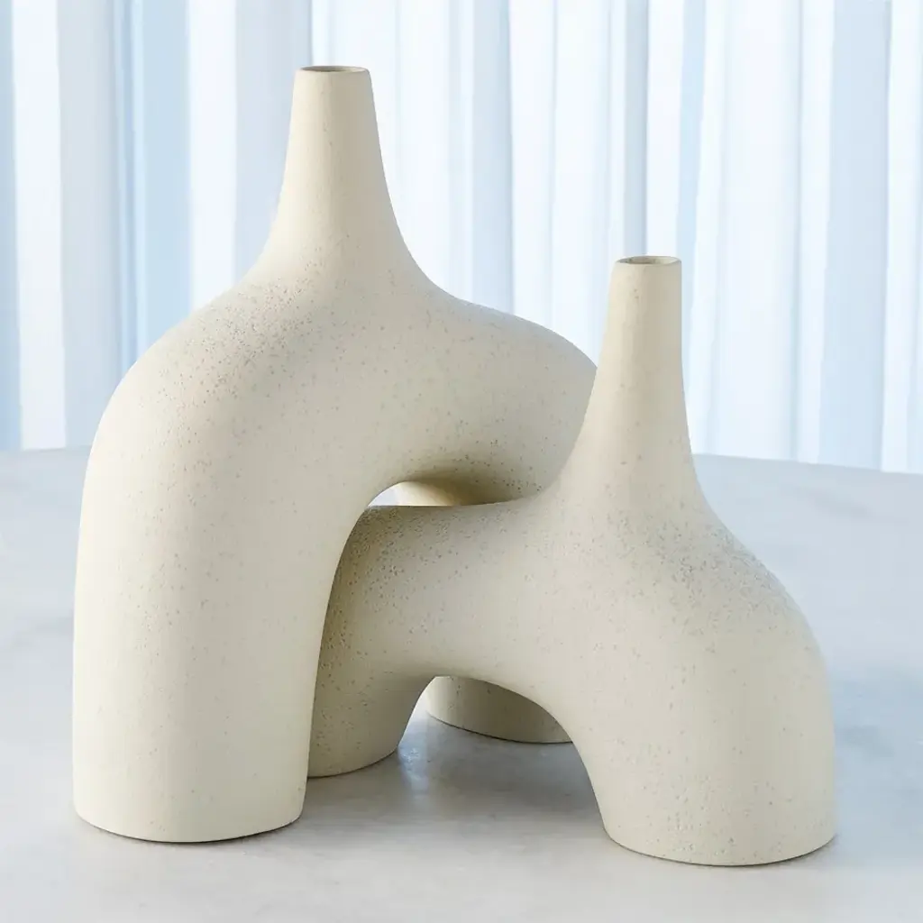 Reminiscent of the 1960's lava glaze ceramics, The Stretch Vases are slip cast vessels that nest/straddle each other. From a fashion forward perspective, Global Views offers accessories, furniture, statement lighting, and an assortment of rugs and mirrors to add beauty and joy to your home.