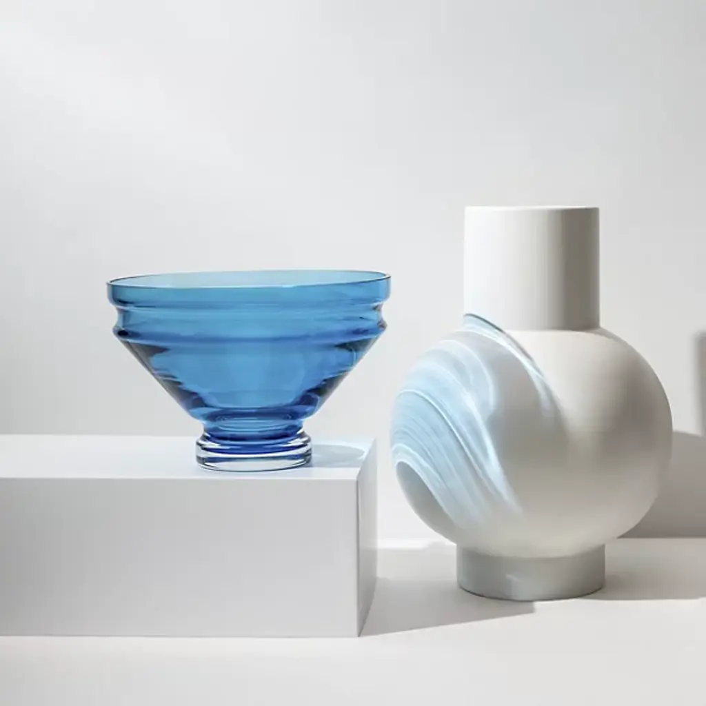 The Strom Vase from Raawii presents a curving geometric form enriched by vibrant colors. A designed Nicholai Wiig-Hansen made in Portugal, it features a cylindrical neck rising from a rounded body set atop a circular base. Each vase is finished by hand with a rich glaze, giving it unique variations that highlight its handmade origins. Ideal for fresh blooms or as an artistic accent, it brings an artful presence to shelves, tables, and counters alike.