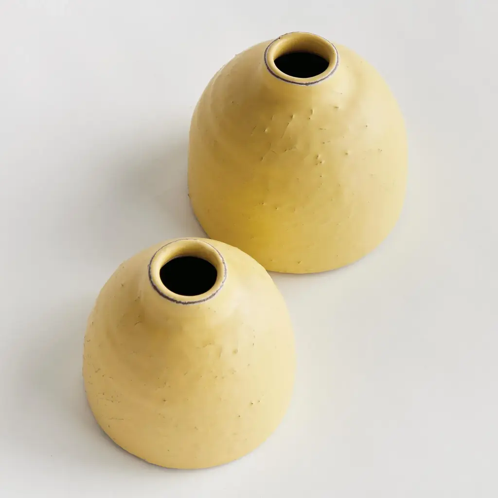 With a crackled glaze, uneven texture and basic form, these bud vases are simple and raw. In a refreshing buttercup yellow, like a freshly made ceramic piece direct from the hands of the artist. Designer floor samples & new product from one of the hottest To The Trade & Retail Home Furnishings showrooms in the country. Located in Chicago's chic Roscoe Village, Kenneth Ludwig Chicago carries the industries best furniture & accessory brands. Always fresh, always inspiring. Quite often ( due to a discontinued style, fabric or frame ) they must sell off their showroom floor samples. You receive first quality pieces at amazing prices. Check back weekly for new inventory added.