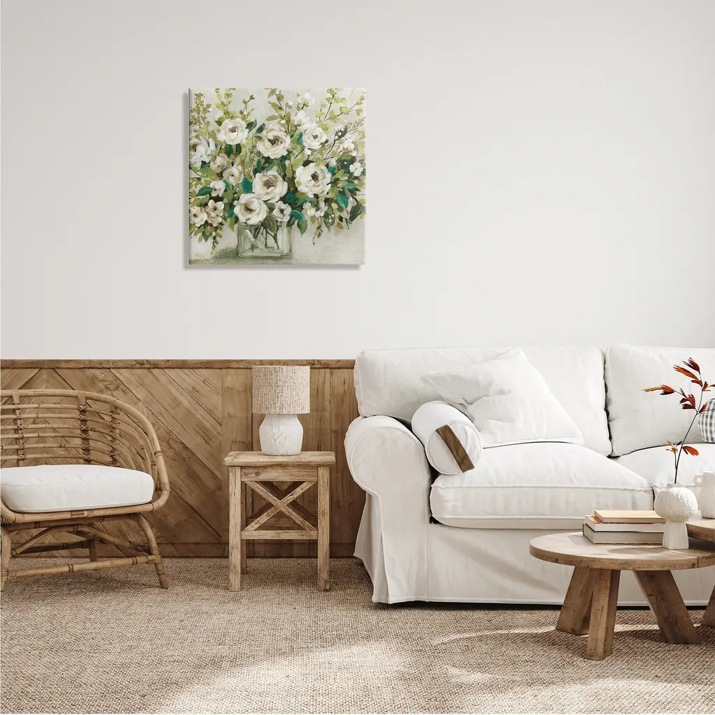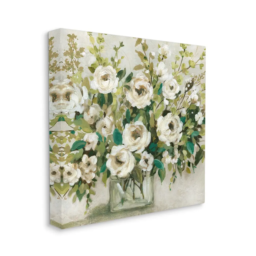 Stupell Abstract White Rose Blossom Bouquet Floral Vase Canvas Wall Art - 24 X 24