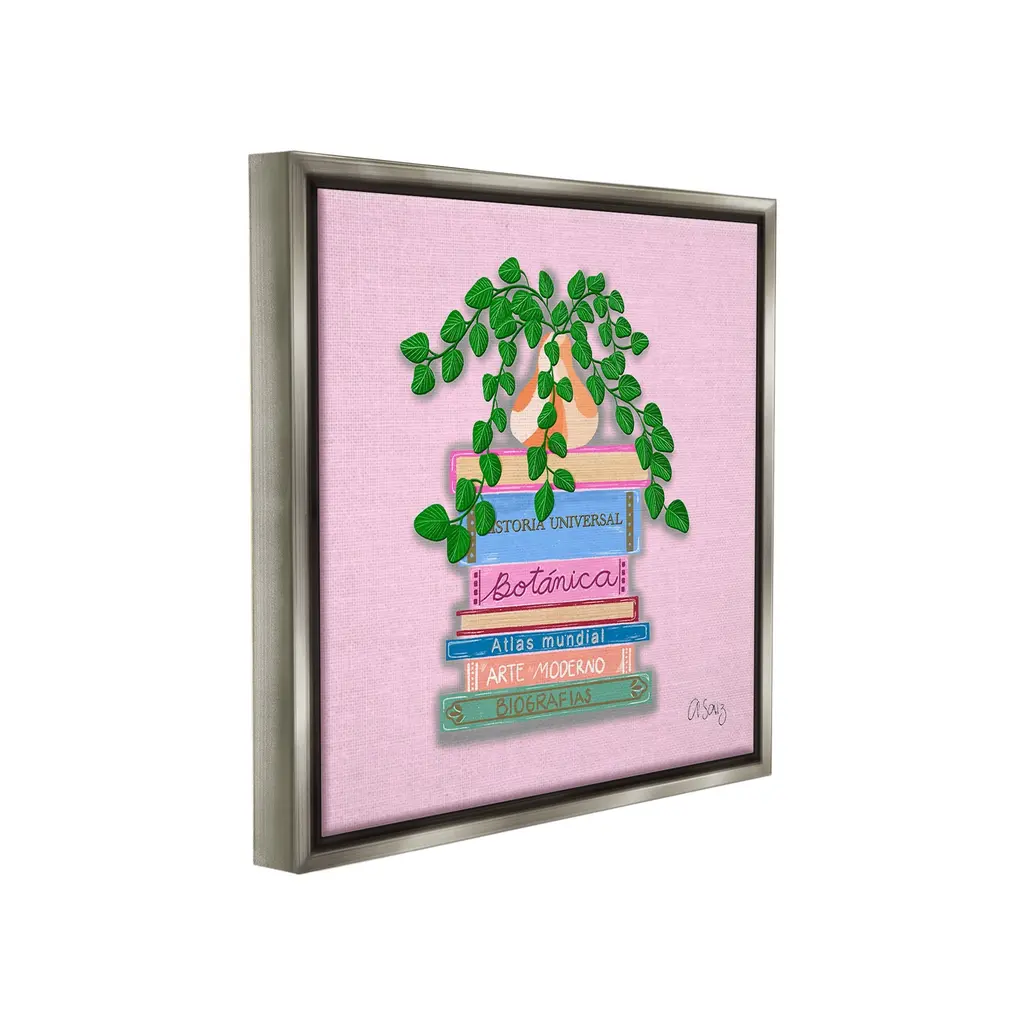 Elevate your home or office to the next level with Stupell Framed Floating Canvas Wall Art. Our premium hand-stretched canvas is mounted securely into a sturdy lightweight frame. The museum-style gap between the wrapped canvas and the box frame gives the illusion of floating artwork. Stupell Wall Art is made in the USA.Features: Dimensions: 18 x 1.7 x 18 Frame, 17 x 1.5 x 17 Canvas ArtFloating Frame Canvas Products are available in sizes 18"x18" and 25"x25". All Floating Frame Canvas Products have a 1.7" Depth.Wall Art is Ready to Hang with Hardware Free Hanging. No Installation required. For Easy Set Up Lean or Layer Artwork on Shelf or Against Wall. Artwork is Permently Fixed into the Frame.Our elevated 1.7" Thick Floating Frame is the perfect complement to our canvas style Wall Art. We use only the highest quality inks in house with industry leading printing solutions. Canvas is hand stretched over a durable wood foundation and then mounted securly into a Modern Box Frame. Made in the USA.Artwork Relates To: Leaf, Plant, Book, Potted Plant, Herbs, Jar, Planter, Pottery, Vase, Bookstack, Reading, BotanicalDesign by Ale Saiz Studio