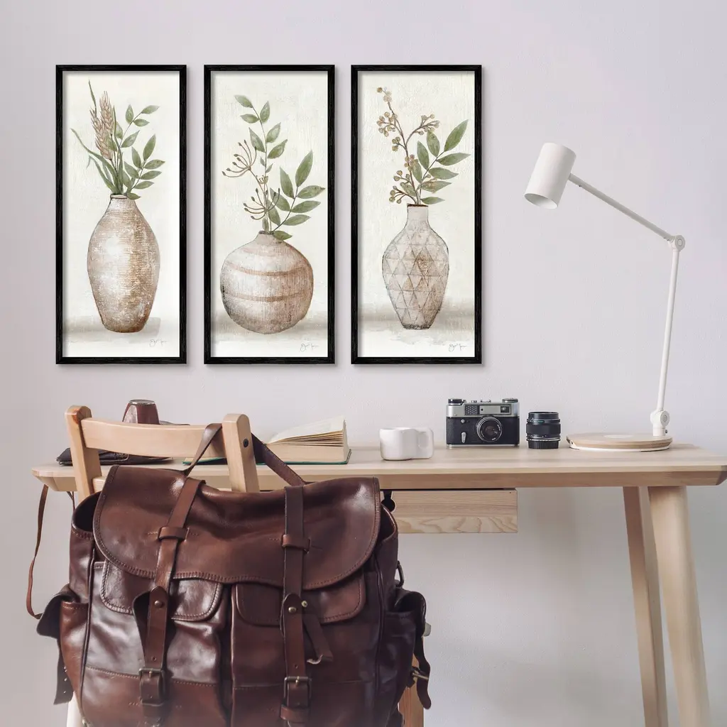 Fill any space in your home or office with our Framed Wall Art Sets. Our textured artwork will add more depth and dimension to any space. Each piece is mounted into a 1.5 inch thick ebony wood grain frame that is ready to hang. Looking for a statement piece? Our boxed framed products are now available in three alluring styles: black, gray farmhouse and white. We have oversized artwork available.Features: Wall Art is Ready to Hang - No Installation or Hardware Needed. For Easy Set Up Lean or Layer Artwork on Shelf or Against Wall.Curated Wall Art Sets make it easy for you complete the theme for any room. Our giclee prints are carefully mounted on a durable MDF backing, and then perfectly finished in a 1.5 inch thick woodgrain frame. Mounted frame colors include black, gray farmhouse and white. Made In USA.Artwork Relates To: Plant; Potted Plant; Vase; Jar; Pottery; Planter; HerbDesign by Janet Tava