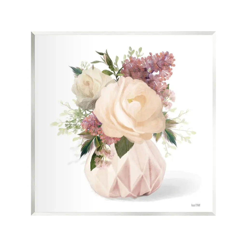 Stupell Bouquet In Geometric Vase Framed Giclee Art Design By House Fenway - 24 X 24 - White