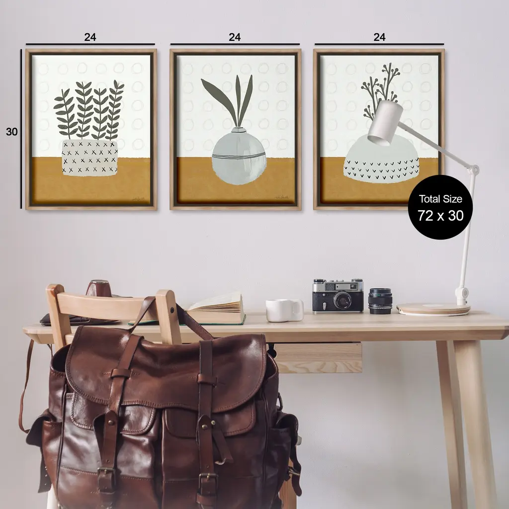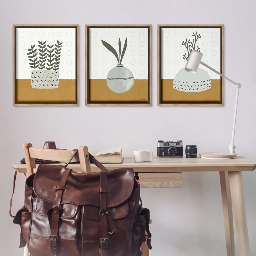 Stupell Contemporary Plant Vases Framed Floater Canvas Wall Art Design By Katie Doucette (Set Of 3) - 25 X 31 - Brown