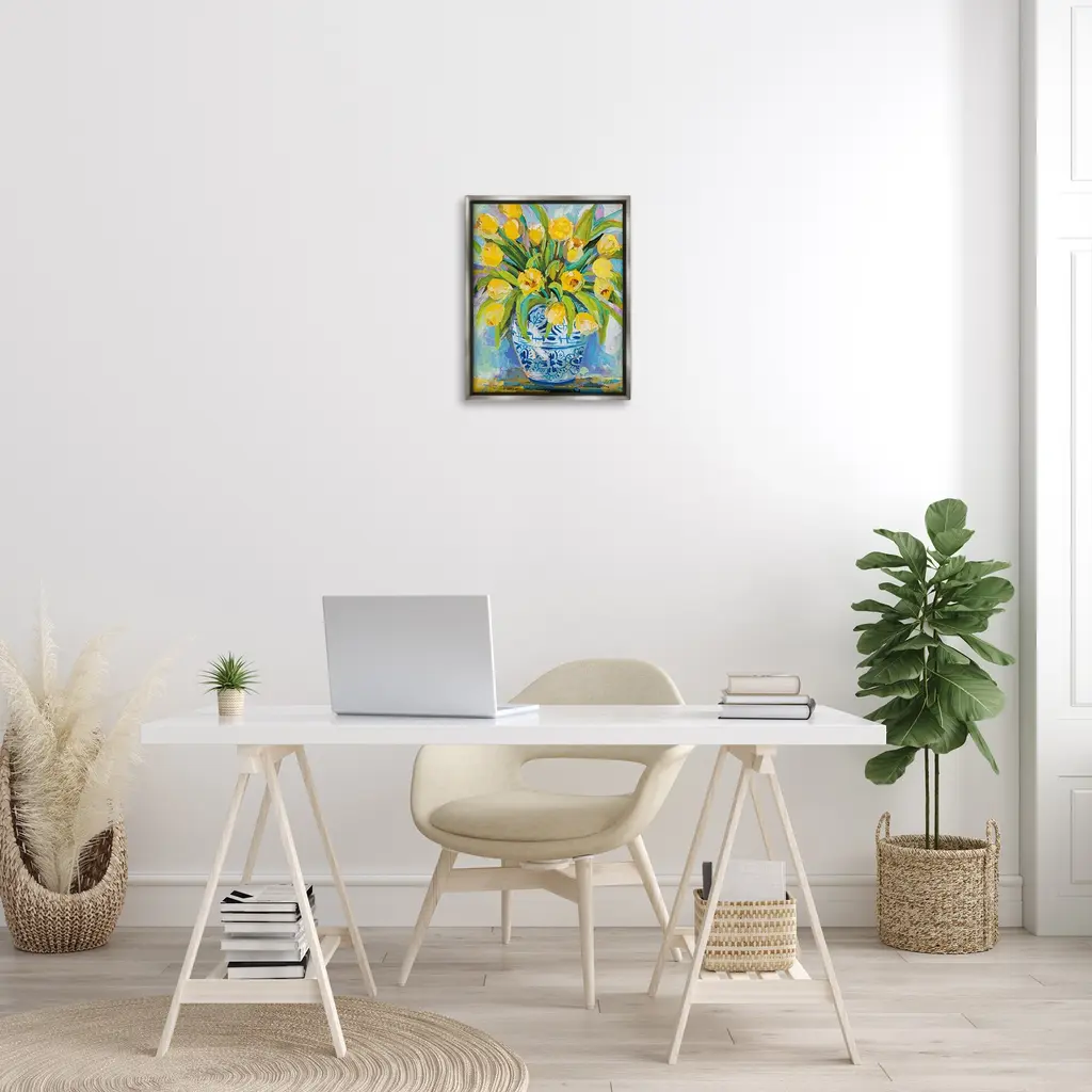 Stupell Expressive Yellow Tulips In Vase Framed Floater Canvas Wall Art Design By Jeanette Vertentes - 17 X 21 - Grey