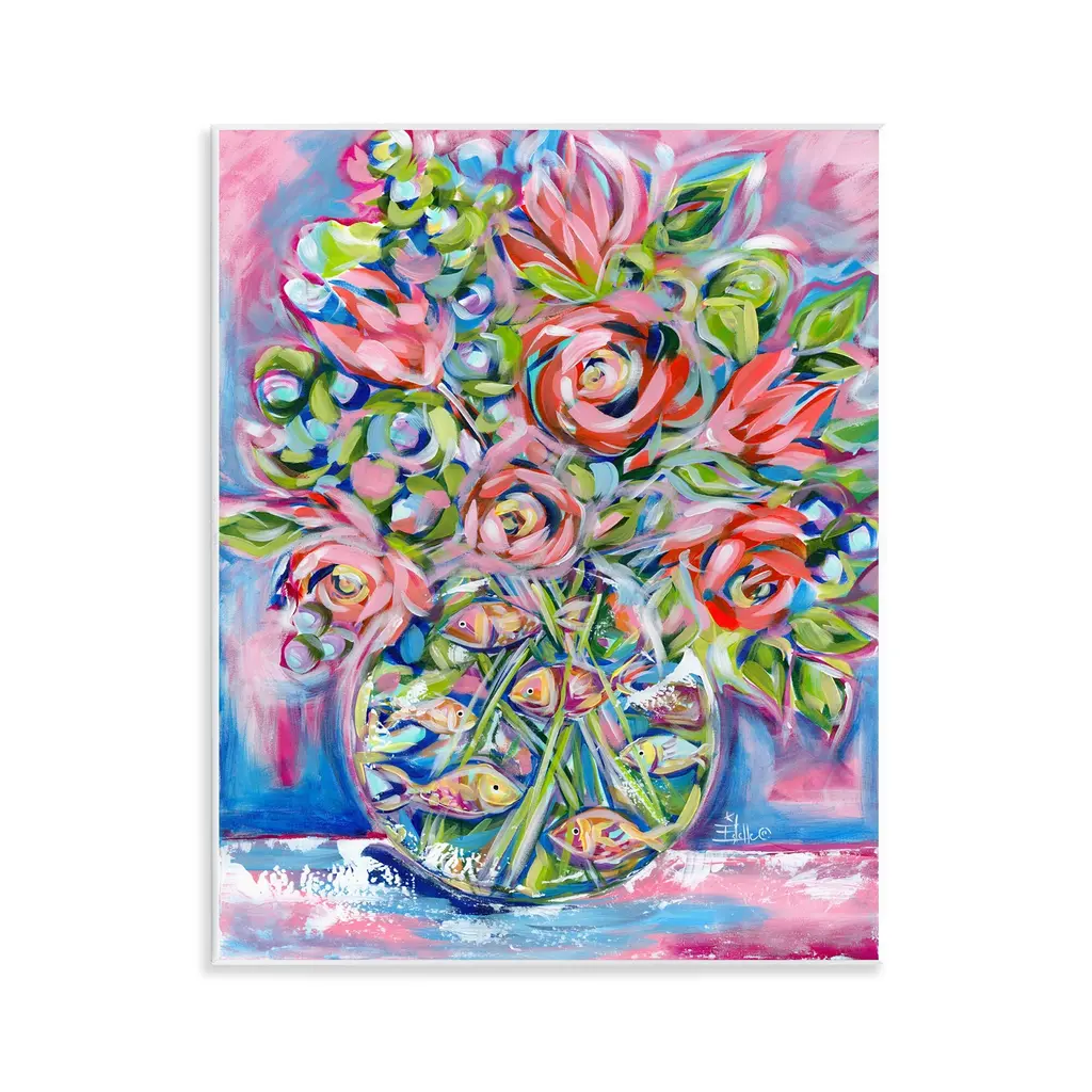 Stupell Fish Vase Bouquet Wall Plaque Art Design By Estelle Grengs - 11 X 14