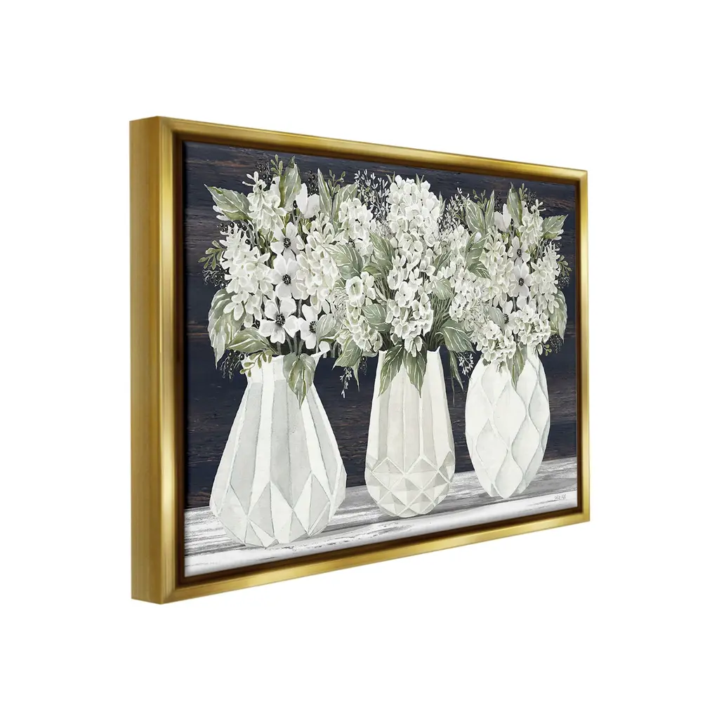 Stupell Flowers In Geometric Vases Framed Floater Canvas Wall Art Design By Cindy Jacobs - 31 X 25 - Gold