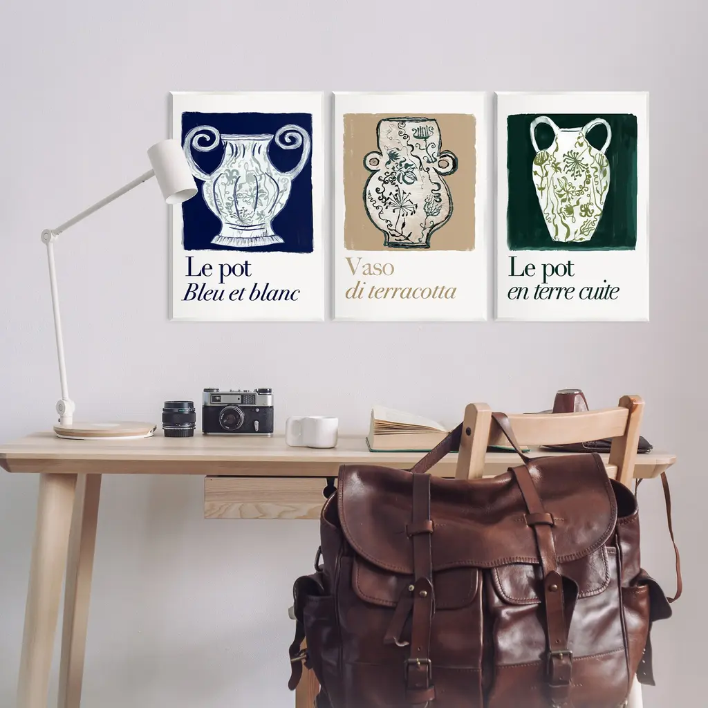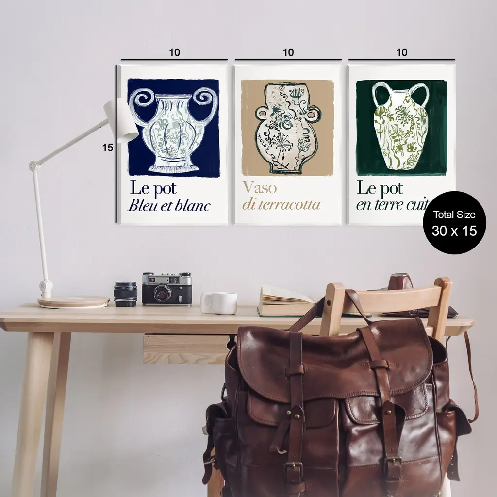 Fill any space with Stupell Wall Art Sets. Our wall plaques start as high-quality lithograph prints mounted on durable 0.5-inch thick MDF wood. Each piece is hand finished and comes with a fresh layer of white foil on the sides to give it a crisp, clean look. Plaques arrive ready to hang without installation and come with removable plastic corners to keep them from damage in transit. Stupell Wall Art is made in the USA.Features: Dimensions: 3 Piece Set, Each Panel is 10 x 0.5 x 15 InchesThree Piece Wall Plaque Sets are available as 10"x15" or 13"x19" Panels. All Wall Plaque Panels have a 0.5" Depth.Wall Art is Ready to Hang with Hardware Free Hanging. No installation required. For Easy Set Up Lean or Layer Artwork on Shelf or Against Wall.All of our wall plaques start off as high quality lithograph prints that are then mounted on durable 0.5 inch thick MDF wood. Each piece is hand finished and comes with a fresh layer of foil on the sides to give it a crisp clean look. Made In USA.Artwork Relates To: Vase, Modern, Culture, PotteryDesign by cartissi