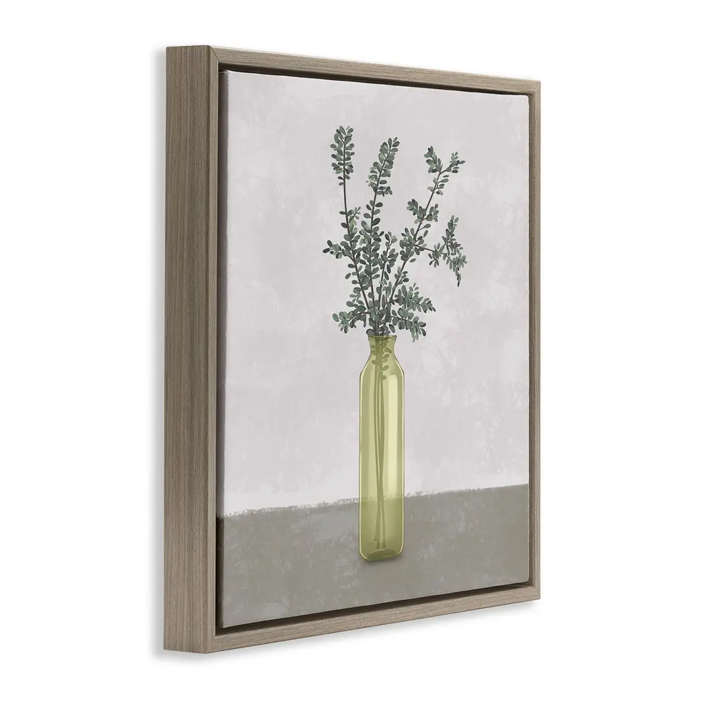 Elevate your home or office to the next level with Stupell Framed Floating Canvas Wall Art. Our premium hand-stretched canvas is mounted securely into a sturdy lightweight frame. The museum-style gap between the wrapped canvas and the box frame gives the illusion of floating artwork. Stupell Wall Art is made in the USA.Features: Dimensions: 18 x 1.7 x 18 Frame, 17 x 1.5 x 17 Canvas ArtFloating Frame Canvas Products are available in sizes 18"x18" and 25"x25". All Floating Frame Canvas Products have a 1.7" Depth.Wall Art is Ready to Hang with Hardware Free Hanging. No Installation required. For Easy Set Up Lean or Layer Artwork on Shelf or Against Wall. Artwork is Permently Fixed into the Frame.Our elevated 1.7" Thick Floating Frame is the perfect complement to our canvas style Wall Art. We use only the highest quality inks in house with industry leading printing solutions. Canvas is hand stretched over a durable wood foundation and then mounted securly into a Modern Box Frame. Made in the USA.Artwork Relates To: Herb, Vase, Botanical, Floral, MinimalDesign by Ziwei Li
