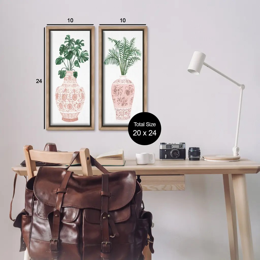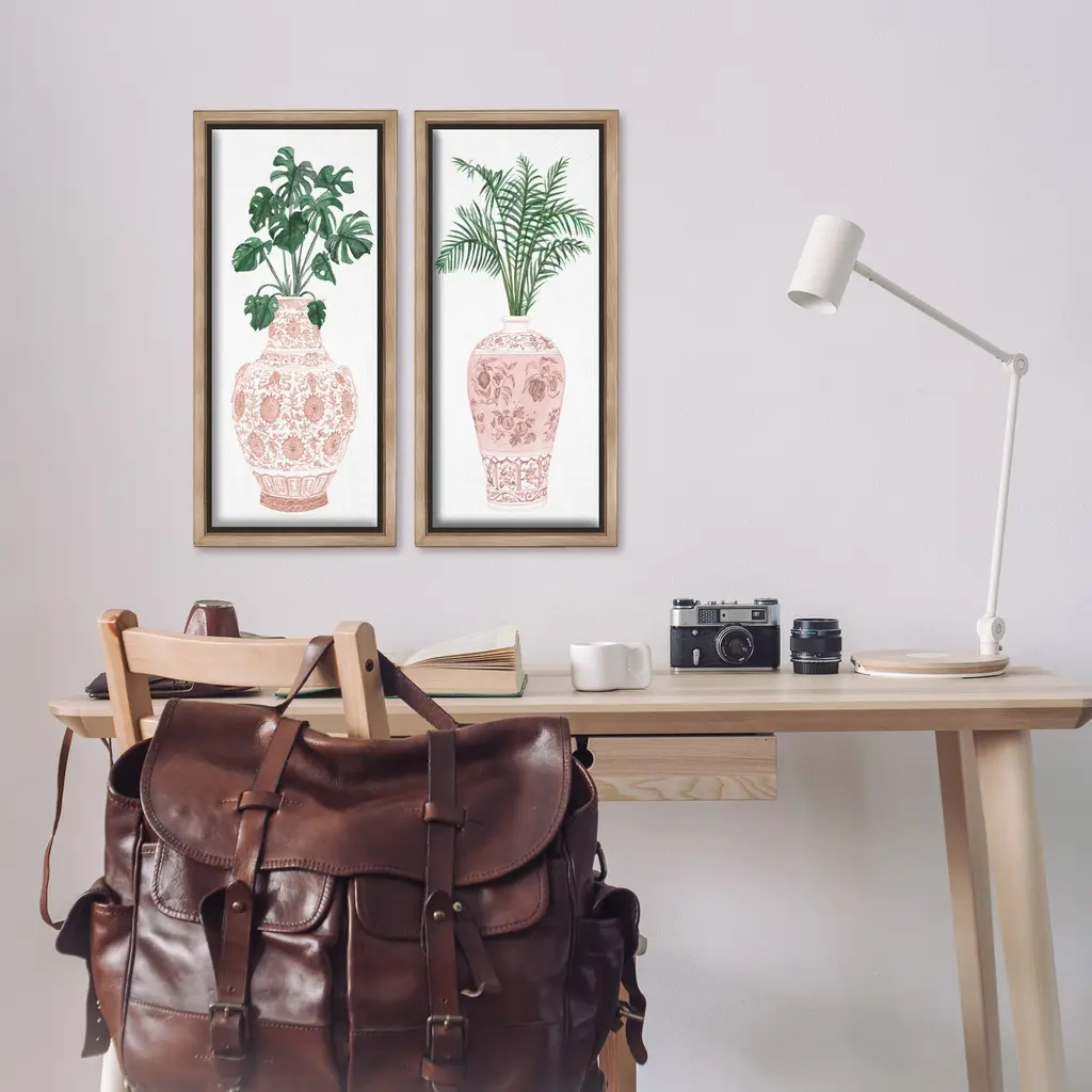 Elevate your home or office to the next level with Stupell Framed Floating Canvas Wall Art. Our premium hand-stretched canvas is mounted securely into a sturdy lightweight frame. The museum-style gap between the wrapped canvas and the box frame gives the illusion of floating artwork. Stupell Wall Art is made in the USA.Features: Dimensions: 2 Piece Set, Each Frame is 11 x 1.7 x 25Two Piece Floating Frame Canvas Products are available as 11"x25" or 14"x31" Panels. All Floating Frame Canvas Products have a 1.7" Depth.Wall Art is Ready to Hang with Hardware Free Hanging. No Installation required. For Easy Set Up Lean or Layer Artwork on Shelf or Against Wall. Artwork is Permently Fixed into the Frame.Our elevated 1.7" Thick Floating Frame is the perfect complement to our canvas style Wall Art. We use only the highest quality inks in house with industry leading printing solutions. Canvas is hand stretched over a durable wood foundation and then mounted securly into a Modern Box Frame. Made in the USA.Artwork Relates To: Pottery, Jar, Vase, Plant, Potted Plant, Planter, Leaf, Pattern, MonsteraDesign by Melissa Wang