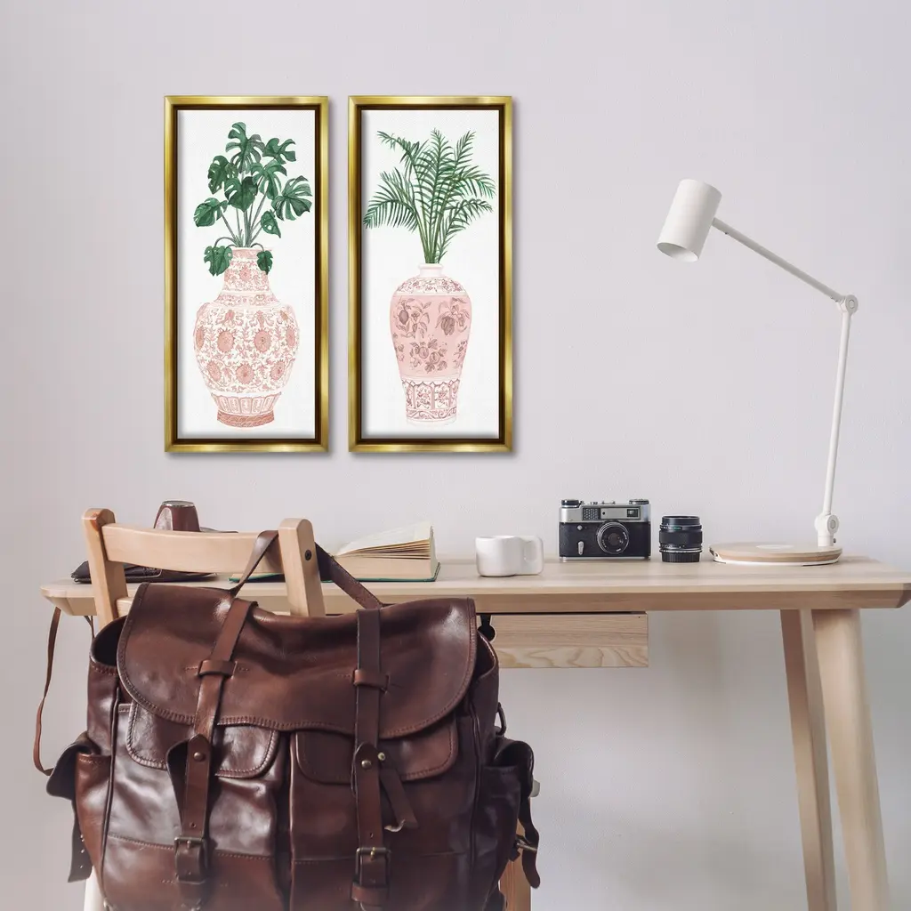 Stupell Plants & Oriental Vases Framed Floater Canvas Wall Art Design By Melissa Wang (Set Of 2) - 11 X 25 - Gold