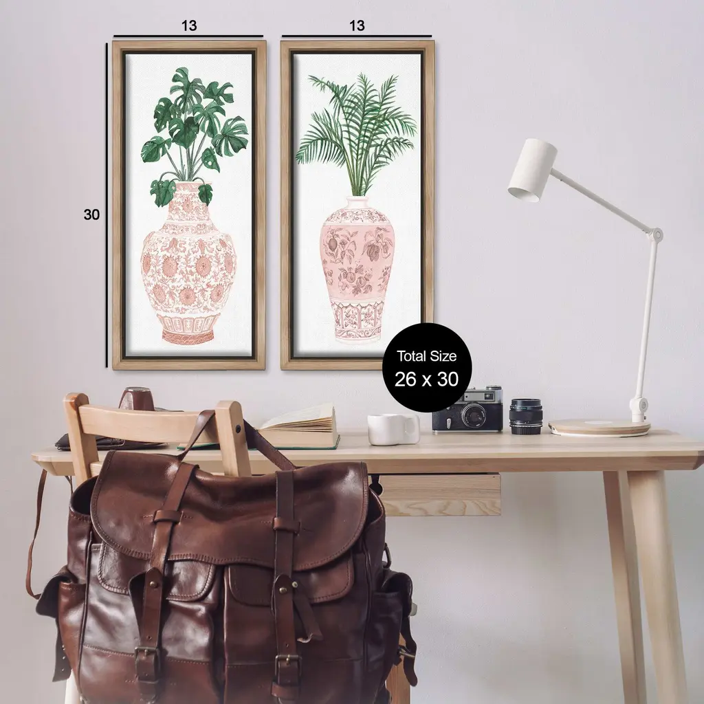 Elevate your home or office to the next level with Stupell Framed Floating Canvas Wall Art. Our premium hand-stretched canvas is mounted securely into a sturdy lightweight frame. The museum-style gap between the wrapped canvas and the box frame gives the illusion of floating artwork. Stupell Wall Art is made in the USA.Features: Dimensions: 2 Piece Set, Each Frame is 11 x 1.7 x 25Two Piece Floating Frame Canvas Products are available as 11"x25" or 14"x31" Panels. All Floating Frame Canvas Products have a 1.7" Depth.Wall Art is Ready to Hang with Hardware Free Hanging. No Installation required. For Easy Set Up Lean or Layer Artwork on Shelf or Against Wall. Artwork is Permently Fixed into the Frame.Our elevated 1.7" Thick Floating Frame is the perfect complement to our canvas style Wall Art. We use only the highest quality inks in house with industry leading printing solutions. Canvas is hand stretched over a durable wood foundation and then mounted securly into a Modern Box Frame. Made in the USA.Artwork Relates To: Pottery, Jar, Vase, Plant, Potted Plant, Planter, Leaf, Pattern, MonsteraDesign by Melissa Wang