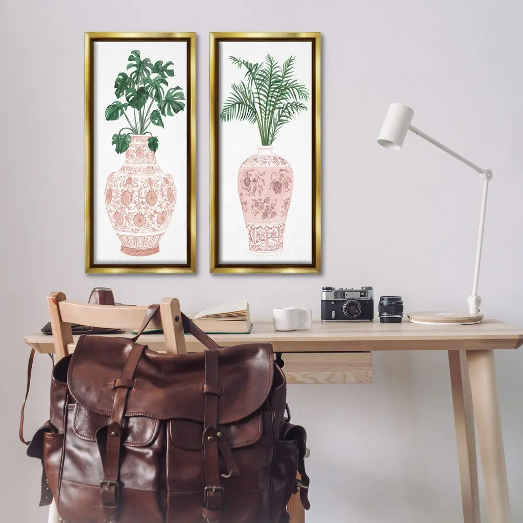 Elevate your home or office to the next level with Stupell Framed Floating Canvas Wall Art. Our premium hand-stretched canvas is mounted securely into a sturdy lightweight frame. The museum-style gap between the wrapped canvas and the box frame gives the illusion of floating artwork. Stupell Wall Art is made in the USA.Features: Dimensions: 2 Piece Set, Each Frame is 11 x 1.7 x 25Two Piece Floating Frame Canvas Products are available as 11"x25" or 14"x31" Panels. All Floating Frame Canvas Products have a 1.7" Depth.Wall Art is Ready to Hang with Hardware Free Hanging. No Installation required. For Easy Set Up Lean or Layer Artwork on Shelf or Against Wall. Artwork is Permently Fixed into the Frame.Our elevated 1.7" Thick Floating Frame is the perfect complement to our canvas style Wall Art. We use only the highest quality inks in house with industry leading printing solutions. Canvas is hand stretched over a durable wood foundation and then mounted securly into a Modern Box Frame. Made in the USA.Artwork Relates To: Pottery, Jar, Vase, Plant, Potted Plant, Planter, Leaf, Pattern, MonsteraDesign by Melissa Wang