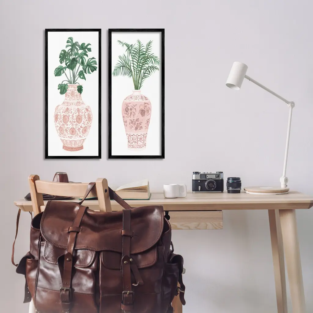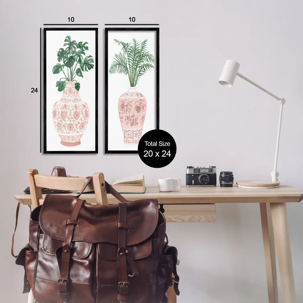 Fill any space in your home or office with our Framed Wall Art Sets. Our framed artwork is securely mounted into a 1.5-inch thick wood grain frame and ready to hang. Frames are available in three alluring styles: black, gray farmhouse and white. Stupell Wall Art is made in the USA.Features: Dimensions: 2 Piece Set, Each Panel is 10 x 1.5 x 24 FramedTwo Piece Framed Giclee Sets are available as 10"x24" or 13"x30" Panels. All Framed Giclee Panels have a 1.5" Depth. Wall Art is Ready to Hang with Hardware Free Hanging. No installation required. For Easy Set Up Lean or Layer Artwork on Shelf or Against Wall.Curated Wall Art Sets make it easy for you complete the theme for any room. Our giclée prints are carefully mounted on a durable MDF backing, and then perfectly finished in a 1.5 inch thick woodgrain frame. Mounted frame colors include black, gray farmhouse and white. Made In USA.Artwork Relates To: Pottery, Jar, Vase, Plant, Potted Plant, Planter, Leaf, Pattern, MonsteraDesign by Melissa Wang