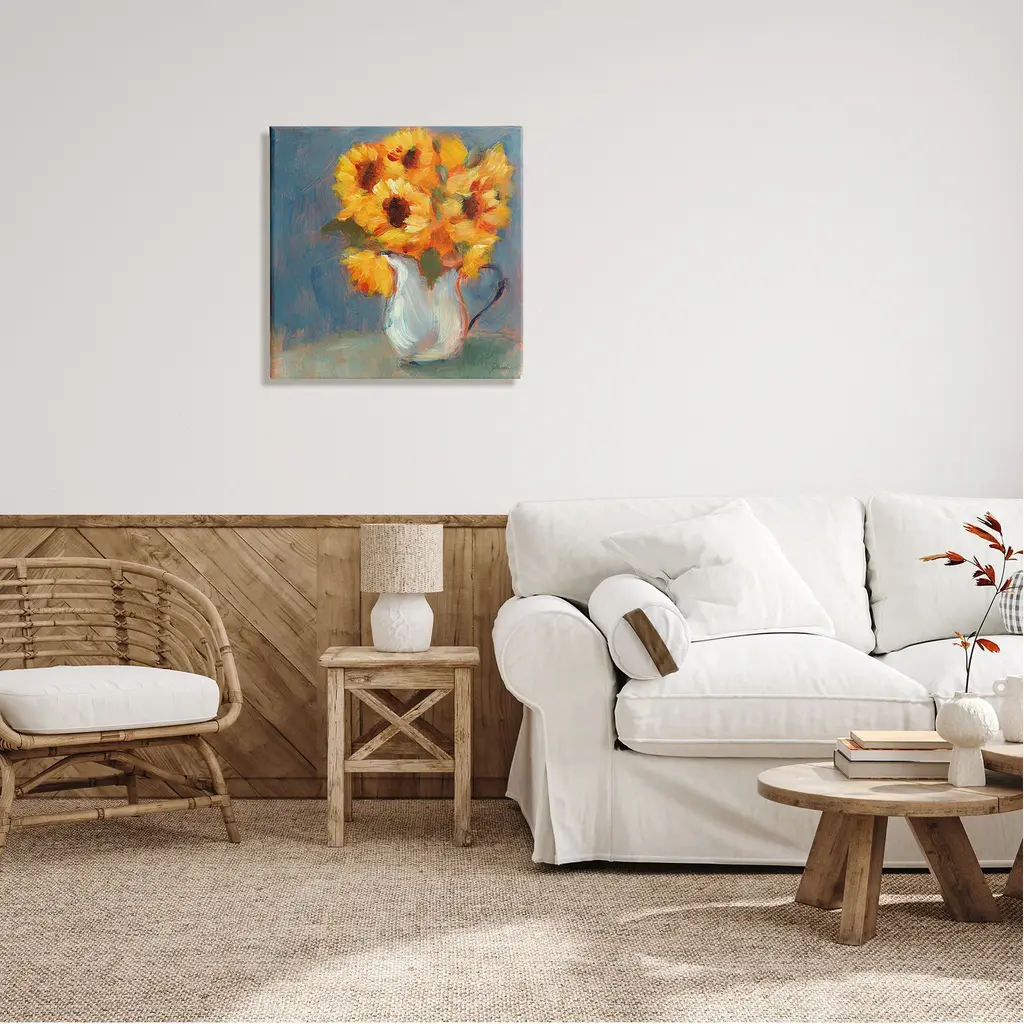 We create our stretched canvas to the highest standards. Using only the highest quality inks and canvas on Mimaki printers, we hand-cut and stretch each piece over a 1.5-inch thick wooden frame for hanging. As a result, the art comes ready to hang on the sturdy ledge with no installation required. Stupell Wall Art is made in the USA.Features: Dimensions: 17 x 1.5 x 17 InchesStretched Canvas Sizes Include Standard: 17 x 1.5 x 17 Large: 24 x 1.5 x 24 X-Large: 30 x 1.5 x 30 Oversized: 36 x 1.5 x 36Wall Art is Ready to Hang with Hardware Free Hanging. No installation required. For Easy Set Up Lean or Layer Artwork on Shelf or Against Wall.Our stretched canvas is created with the highest standards. We use only the highest quality inks and canvas on our in house Mimaki printers, and then hand cut and stretch each piece over a 1.5 inch thick wooden frame for hanging. Made In USA.Artwork Relates To: Painting, Flower, Plant, Vase, Flower Arrangement, Flower Bouquet, Floral, SunflowerDesign by Sue Schlabach