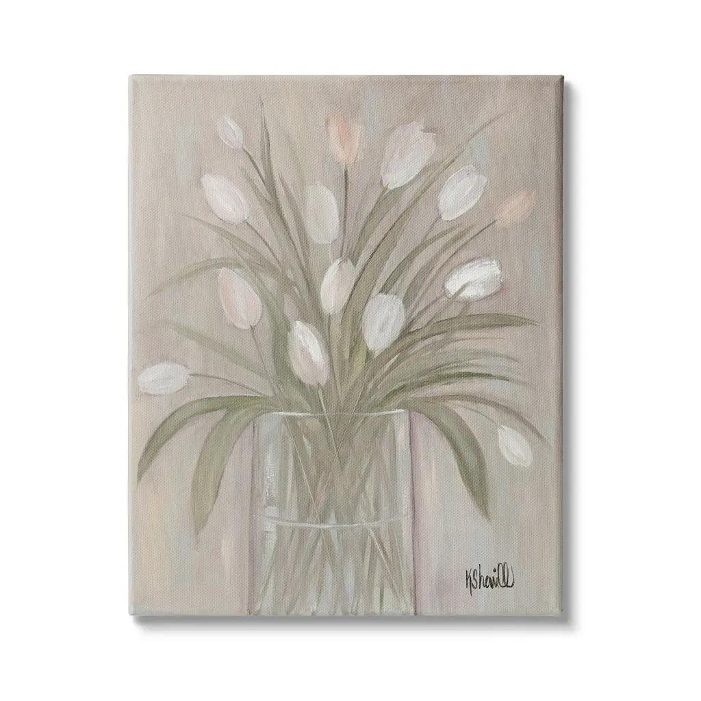 Stupell Tranquil White Tulip Bouquet In Country Vase Canvas Wall Art - Green - 24 X 30