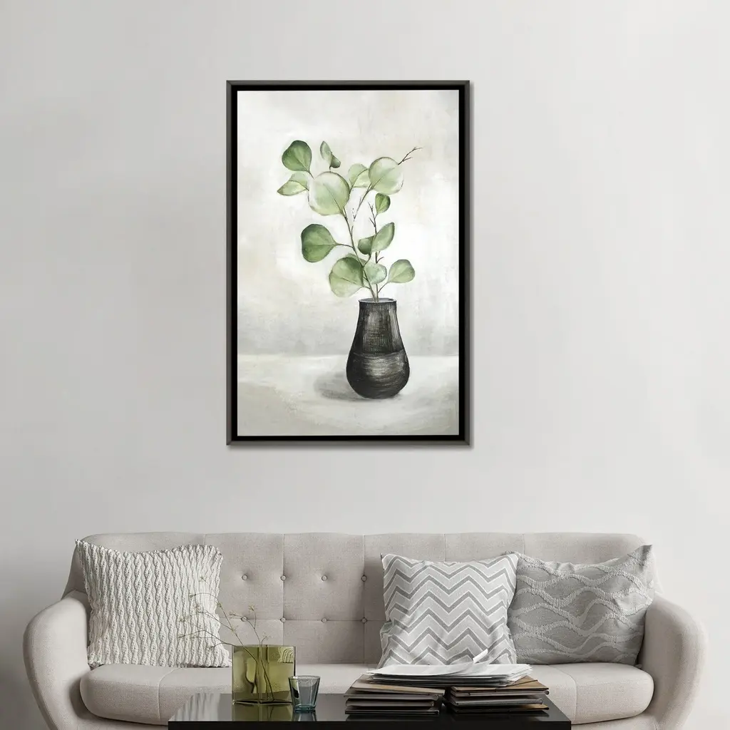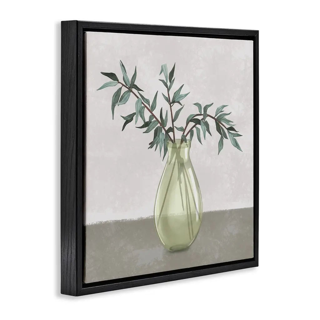 Elevate your home or office to the next level with Stupell Framed Floating Canvas Wall Art. Our premium hand-stretched canvas is mounted securely into a sturdy lightweight frame. The museum-style gap between the wrapped canvas and the box frame gives the illusion of floating artwork. Stupell Wall Art is made in the USA.Features: Dimensions: 18 x 1.7 x 18 Frame, 17 x 1.5 x 17 Canvas ArtFloating Frame Canvas Products are available in sizes 18"x18" and 25"x25". All Floating Frame Canvas Products have a 1.7" Depth.Wall Art is Ready to Hang with Hardware Free Hanging. No Installation required. For Easy Set Up Lean or Layer Artwork on Shelf or Against Wall. Artwork is Permently Fixed into the Frame.Our elevated 1.7" Thick Floating Frame is the perfect complement to our canvas style Wall Art. We use only the highest quality inks in house with industry leading printing solutions. Canvas is hand stretched over a durable wood foundation and then mounted securly into a Modern Box Frame. Made in the USA.Artwork Relates To: Herb, Vase, Botanical, Floral, Minimal, LeafDesign by Ziwei Li