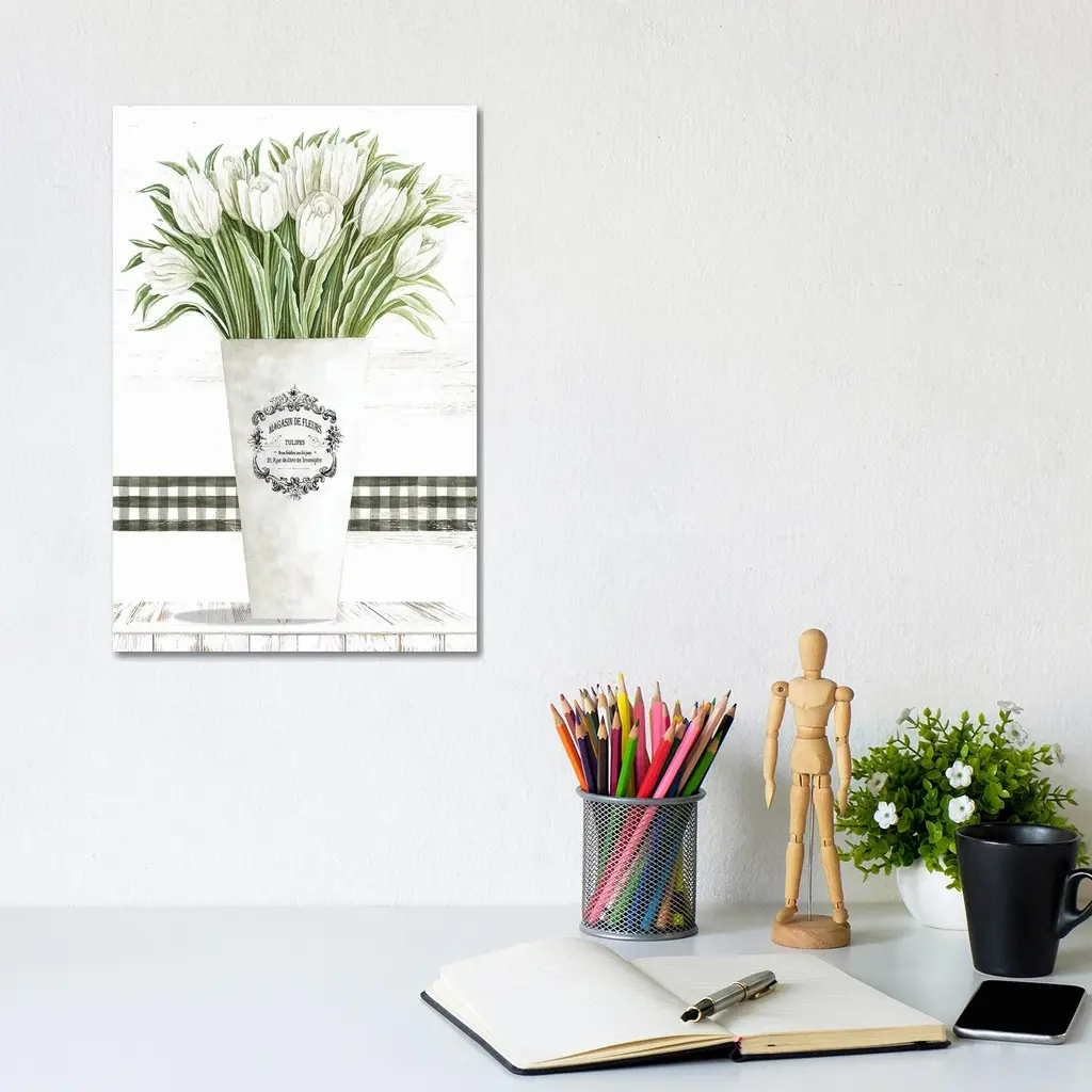 Stupell White Tulip Bouquet In Parisian Vase Floral Arrangement Framed Wall Art - 16 X 20 - Black