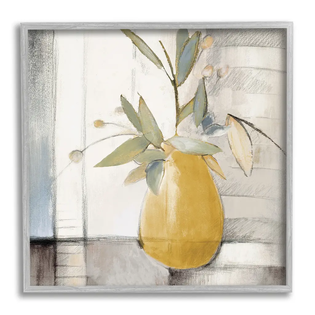 Stupell Yellow Foliage Vase Over Abstract Grid Pattern Canvas Wall Art - Multi-Color - 17 X 17