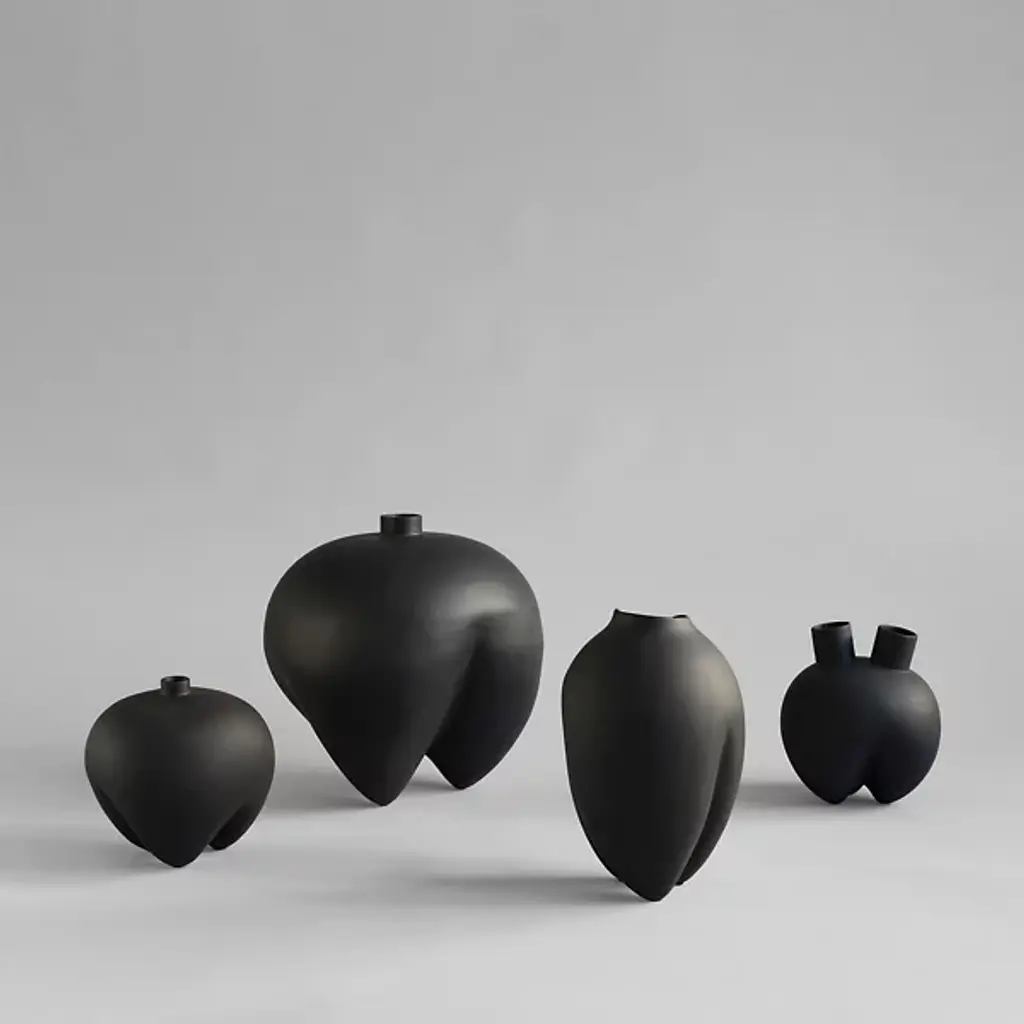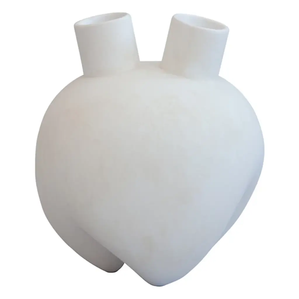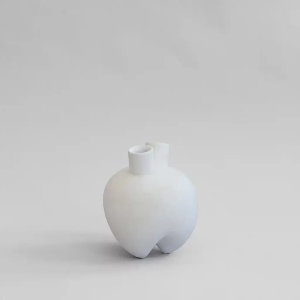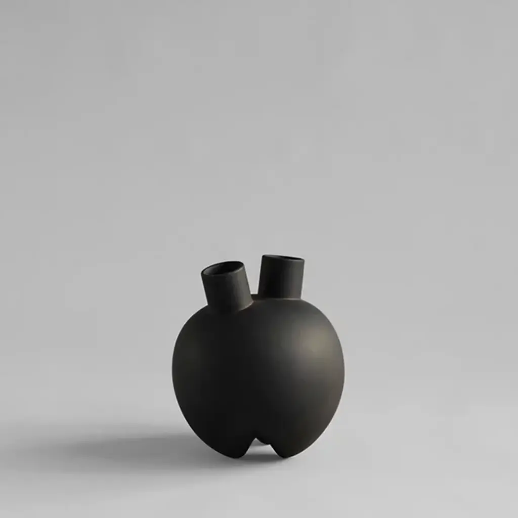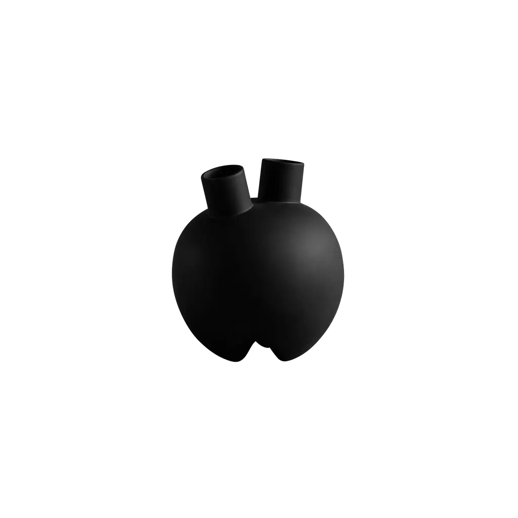 Unleash the power of the Sumo Horns Vase from 101 Copenhagen, designed by Kristian Sofus Hansen and Tommy Hyldahl. Inspired by the grandeur of Sumo wrestling, these ceramic vases feature bold, voluminous forms with distinctive narrow legs and two angled openings that create something abstract and sculptural. The design blends familiar vase shapes with innovative, artistic details, inviting fresh perspectives on design. Hand-glazed for unique color variations, each vase includes a bag that protects fresh flowers inside the non-waterproof vase.