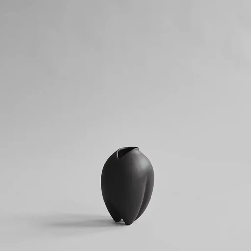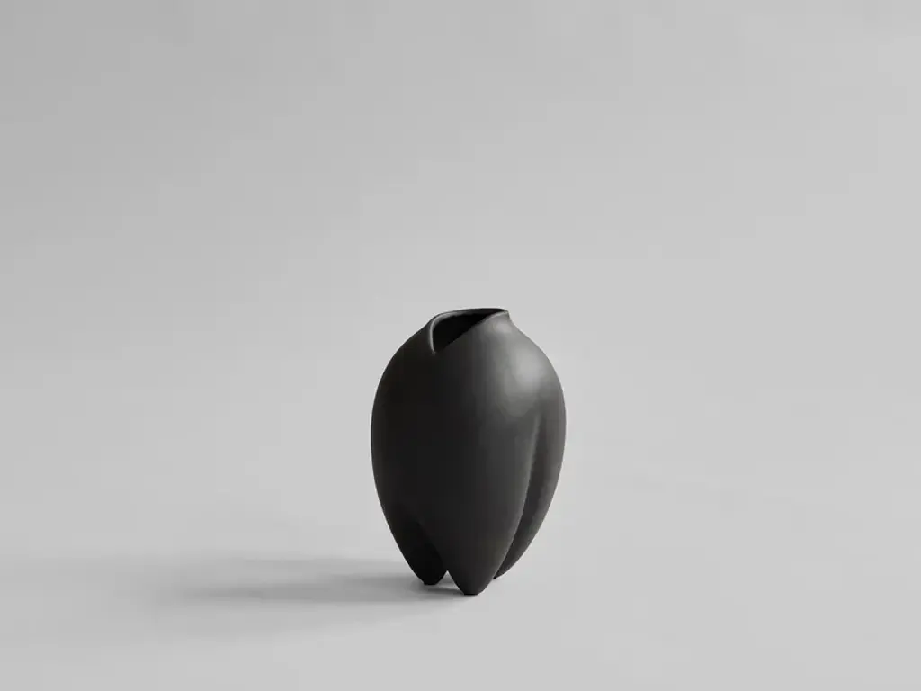 Embrace the dynamic elegance of the Sumo Slim Vase from 101 Copenhagen, An endearing and accessible design by Kristian Sofus Hansen and Tommy Hyldahl. Echoing the weighty grandeur of Sumo wrestling, this ceramic vase showcases a striking, sculptural form with its robust, rounded shape and slender, angled opening. Its design merges classic vase aesthetics with bold, artistic twists, offering a fresh take on modern decor. Each hand-glazed vase features unique color variations and comes with a protective bag for fresh flowers, accommodating its non-waterproof design.