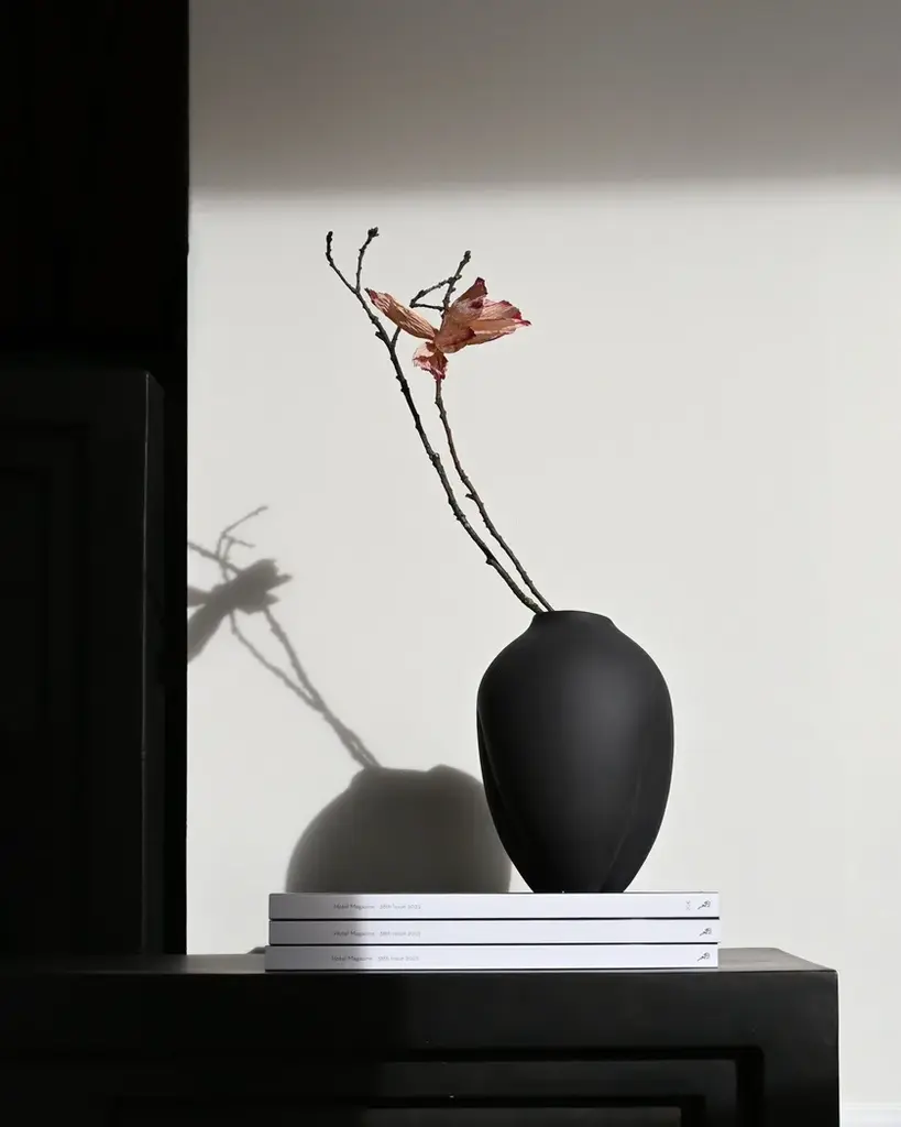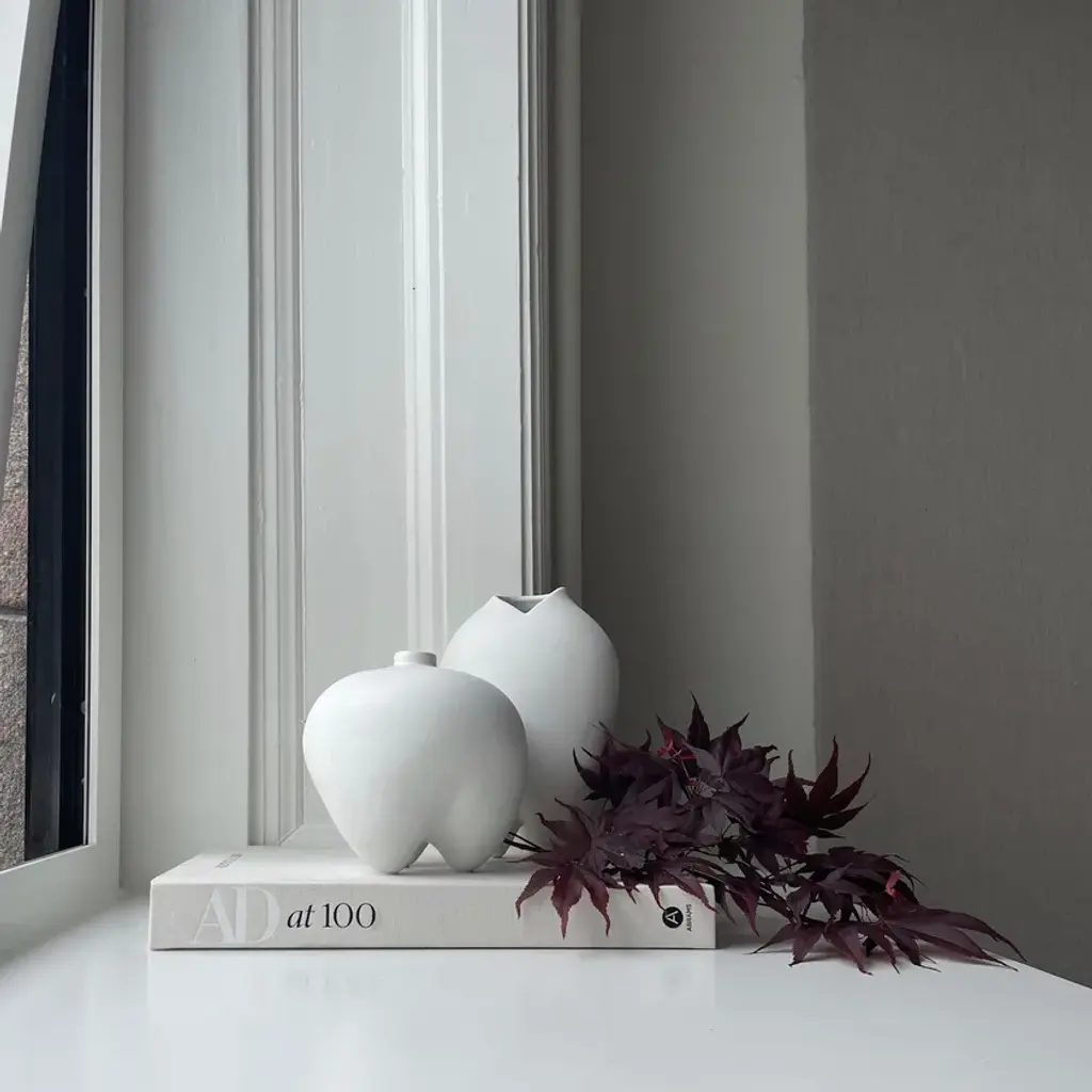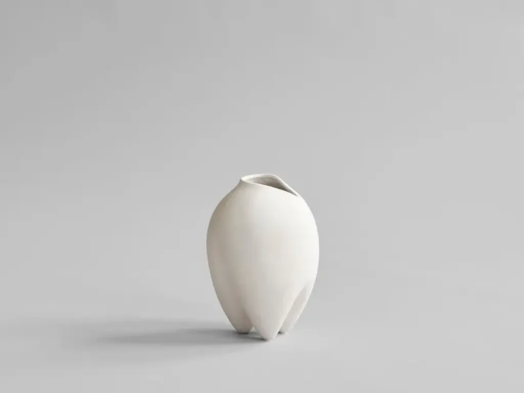 Sumo is a ceramic vase. Made from fine high-quality clay, all ceramic products are crafted using molds and fired in a kiln. Each piece is then hand-painted with a brush up to four times to achieve a soft, brushed surface with a patinated texture, similar to suede.SUMO celebrates the human body. As a reference to the Japanese sport Sumo, all vases are voluminous in size and shape, resting on top of narrow pointing legs. All vases have different openings from the traditional narrow vase openings to double openings and deep carved openings.The SUMO collection looks at the contrast between familiar vase shapes and the addition of more artistic, abstract ideas and details, questioning our individual perceptions of the shape of a vase. The SUMO collection is designed as a stand-alone artistic object yet forming a united family of objects when gathered. As it is a hand glazed natural product, the colours may vary slightly and as it is not 100% waterproof, a bag for fresh flowers is included.