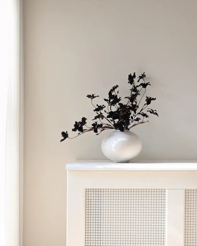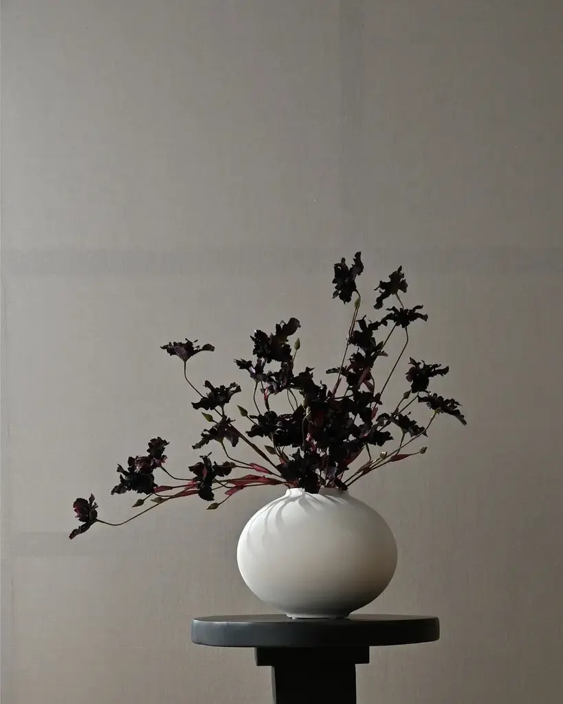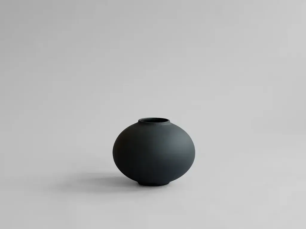 Sunao Vase Fat is a decorative ceramic vase. Sourced from fine, high-quality clay, all ceramic products are molded and kiln-fired. Afterwards, each piece is hand-painted with a brush up to four times to achieve a soft, brushed surface with a patinated texture resembling suede.