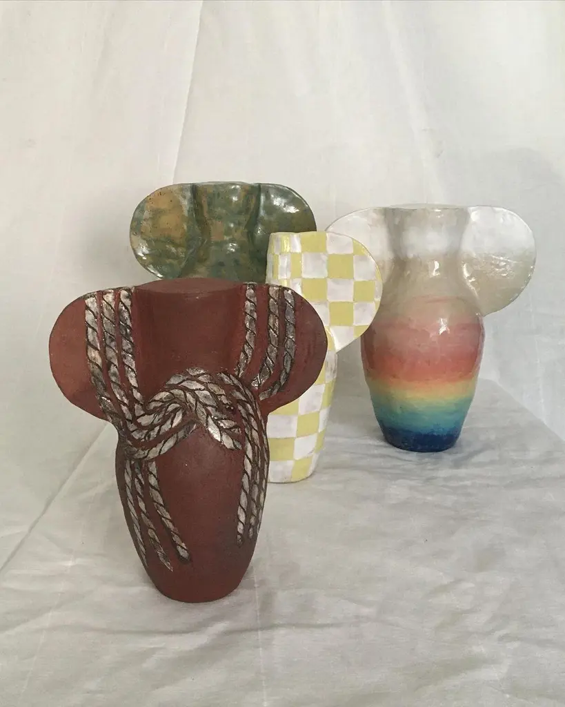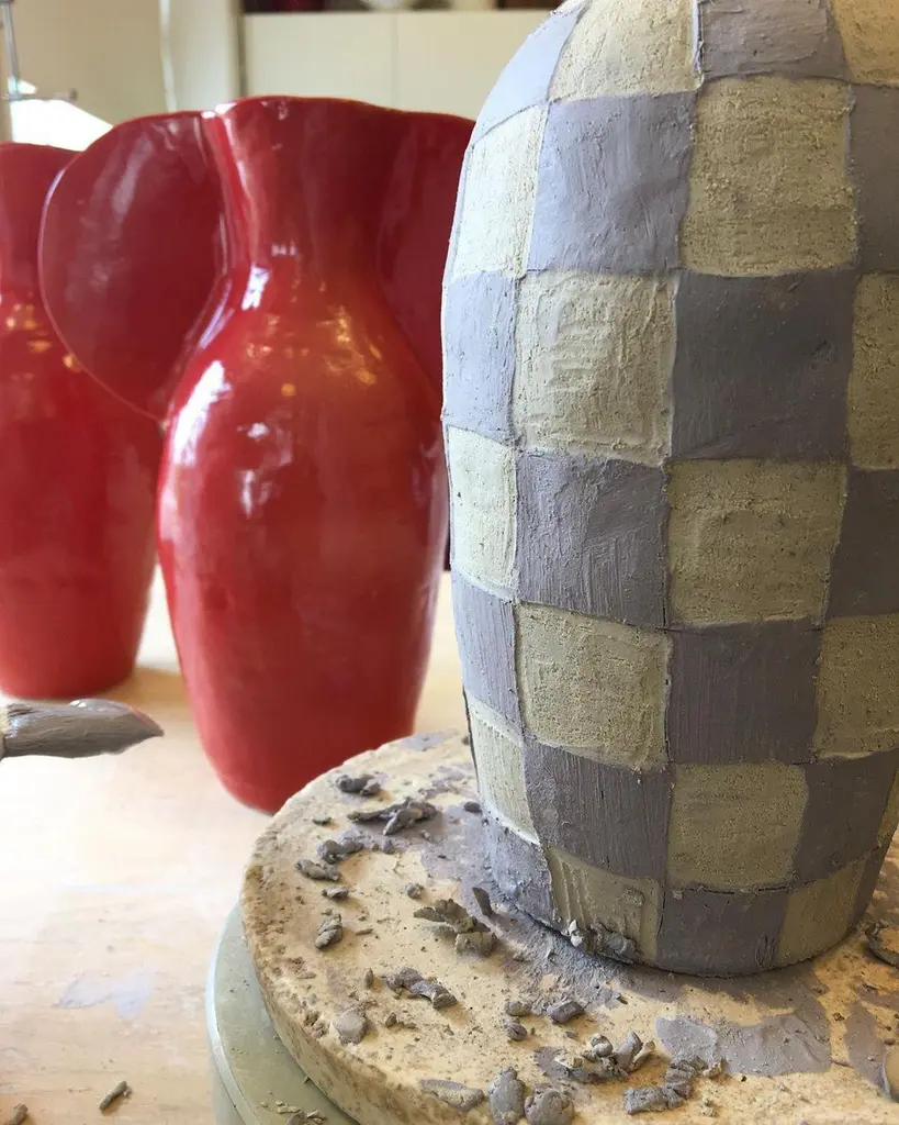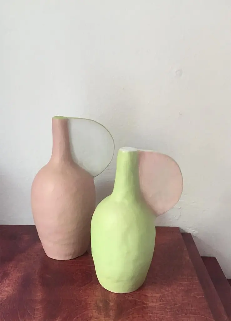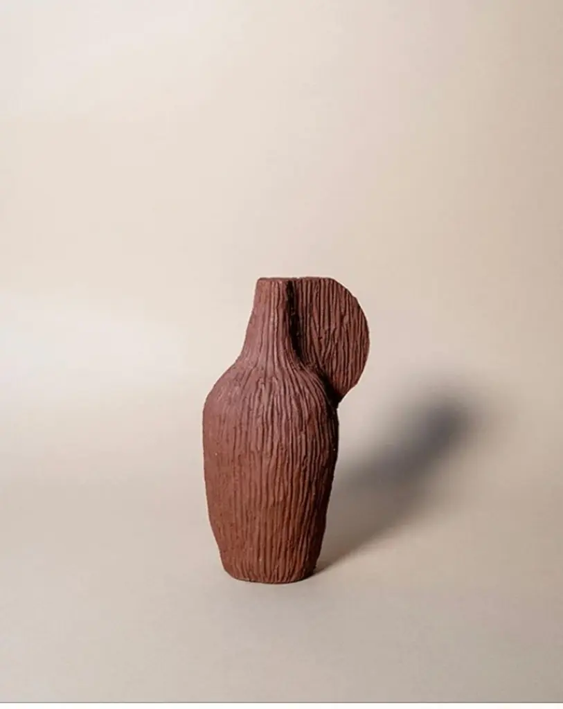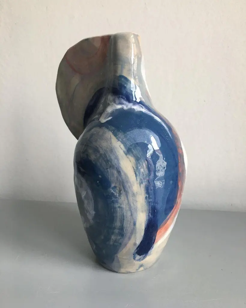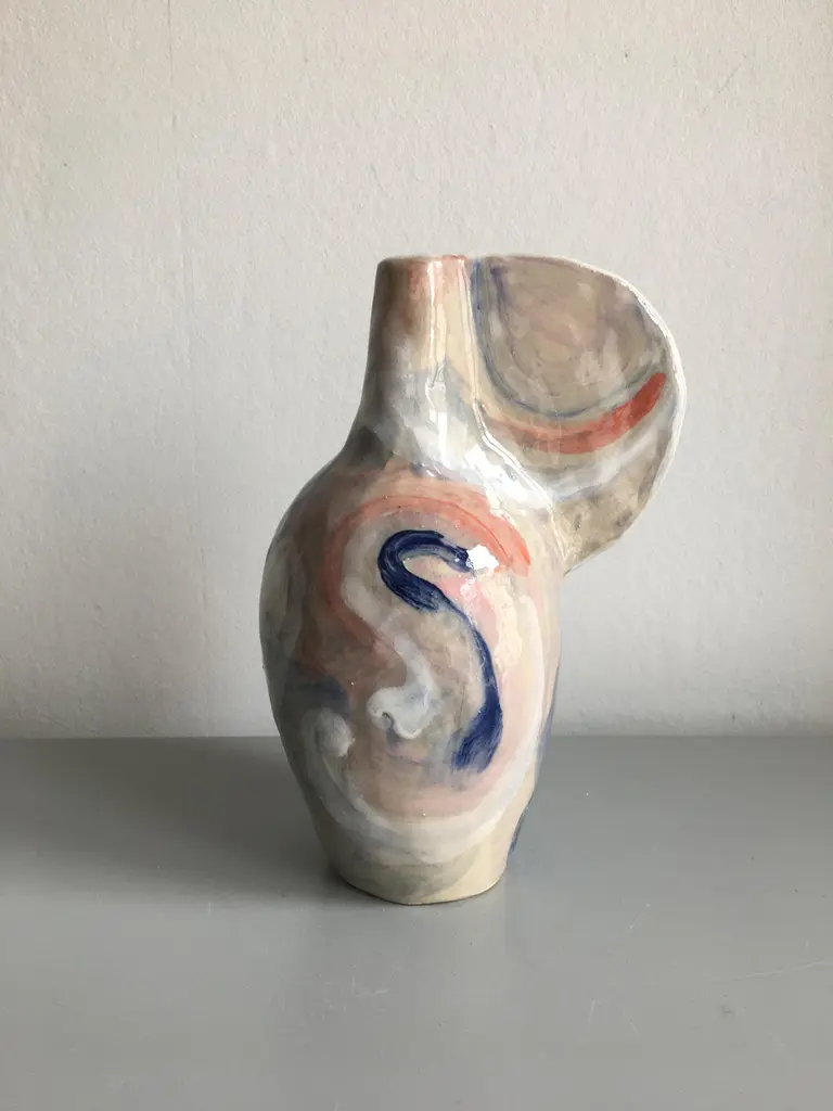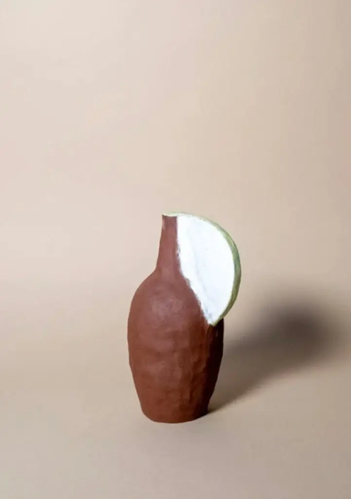 Sunset Sculpture Vase by Maria LenskjoldDimensions: H 30 cmMaterials: StonewareMaria Lenskjold’s practice is based on a consistent principle; to investigate and interact with the common pictorial artistic categories and challenge them in playful and unpretentious genre breaks. It happens when she works on the edge between art and design, and brings everyday items into her practice, using predominantly ceramic and textiles. Her ceramic objects and installations will often lead the viewer to recognize an implicit function, which on closer inspection is merely an abstraction, even a caricature of, for example, a vase.With her works, Maria Lenskjold sets the craft and in-depth material studies above the functional lifestyle object and commercial interests, and lets the aesthetic experience be the object's primary function.Maria Lenskjold (1981) graduated from the Royal Danish Academy of Art in 2011, lives and works in Copenhagen.