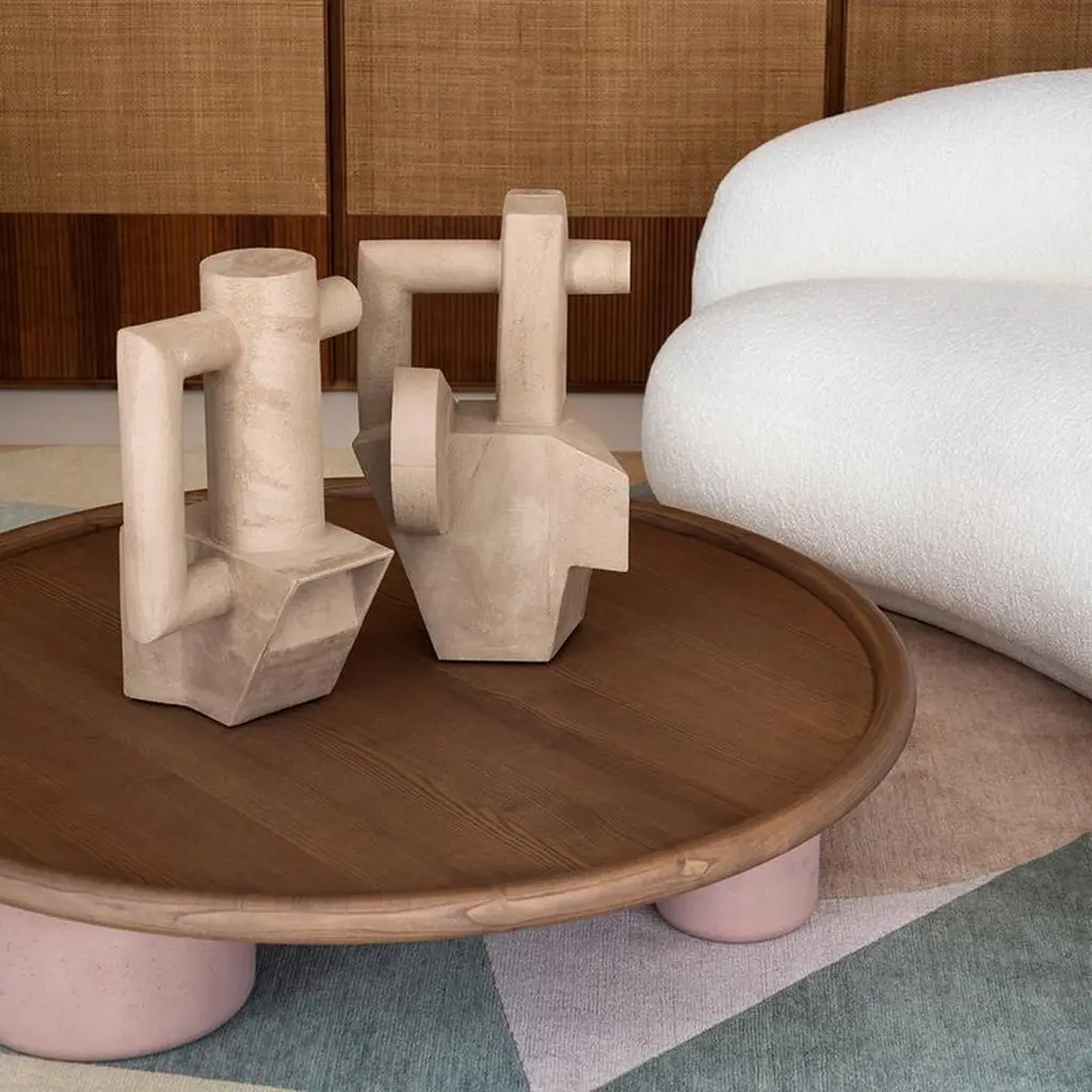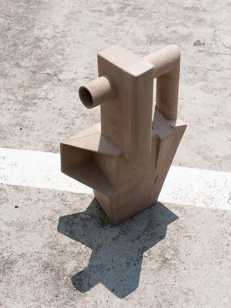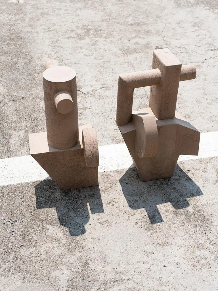 The cubist Pablo and Dora vases are a tribute to Pablo Picasso and Dora Maar, his companion and muse. Crafted using the coil pottery technique, the brown engobed stoneware vases are in the form of overlapping geometric shapes that create an effect of depth and three-dimensionality that varies depending on the observer’s perspective.