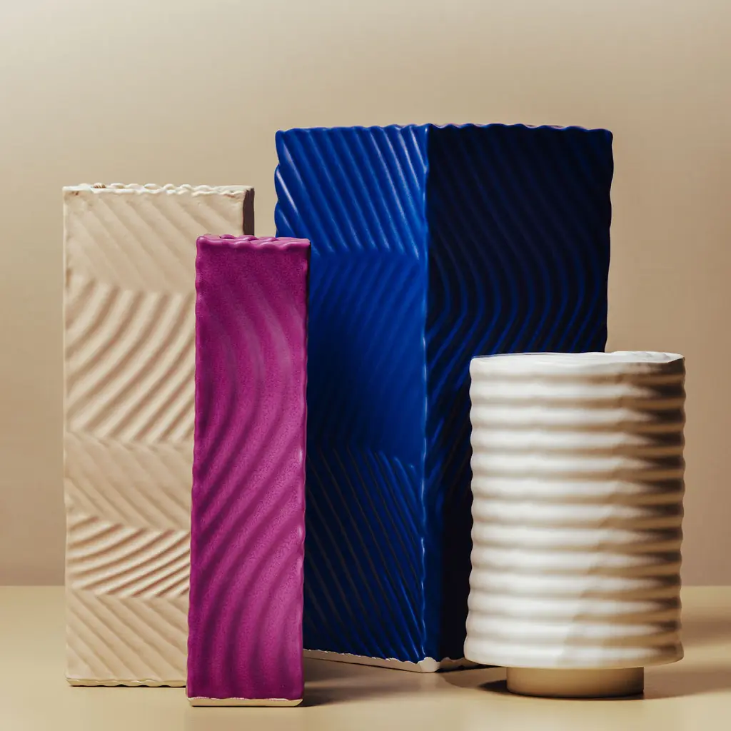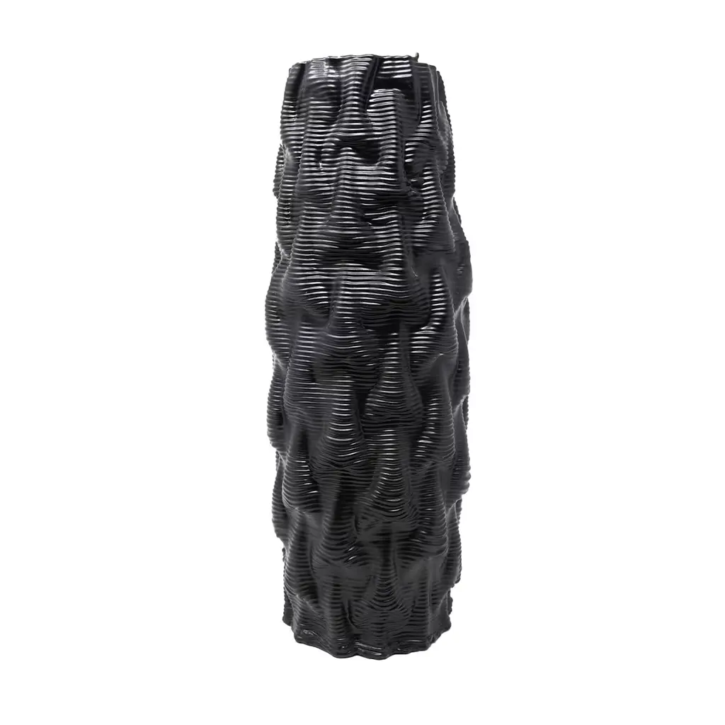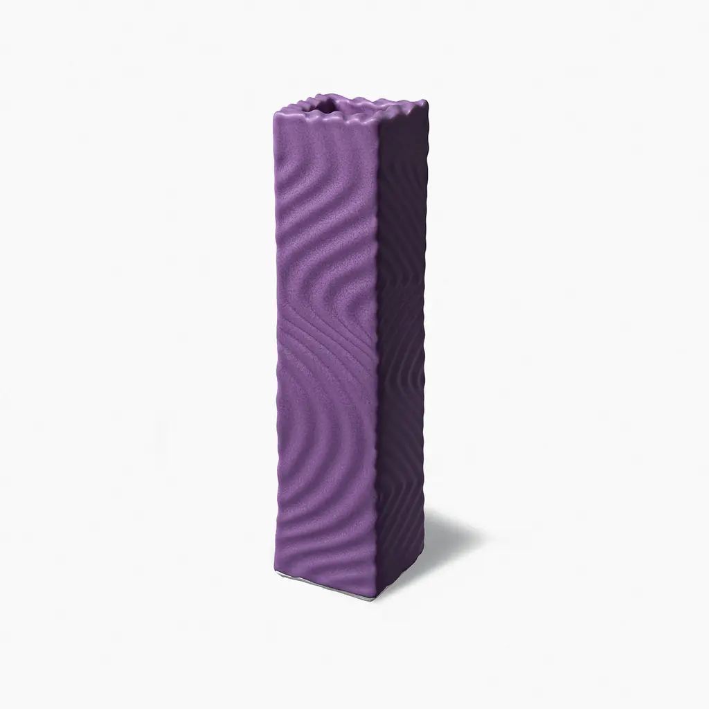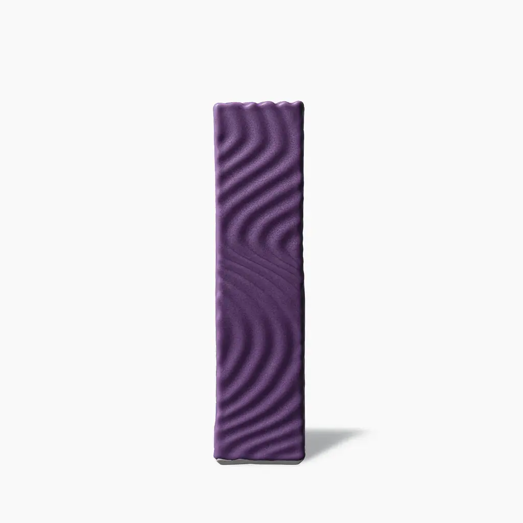 This tall ceramic vase features a rectangular body with a square opening at its top. It is perfect for adorning a table as the centerpiece holding an arrangement of flowers, and can also be placed in any room in the home creating a pop of color. Its surface was given a dynamic texture achieved by zigzagging ridges covering the piece from top to bottom. The bright purple glaze of this piece will enhance the look of any room, and will create a statement when placed among the other Angular vases in different colors.