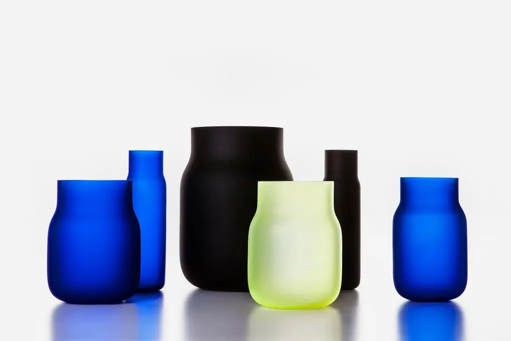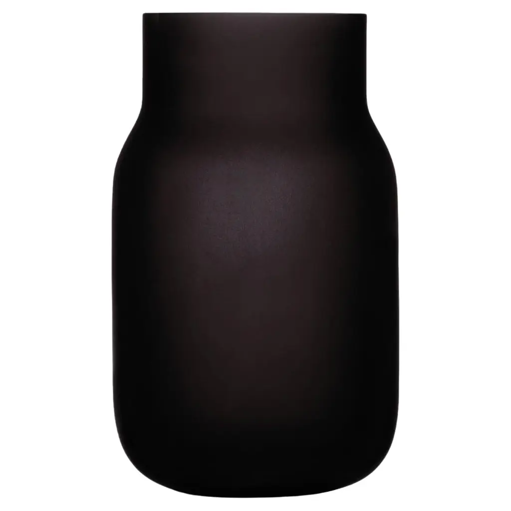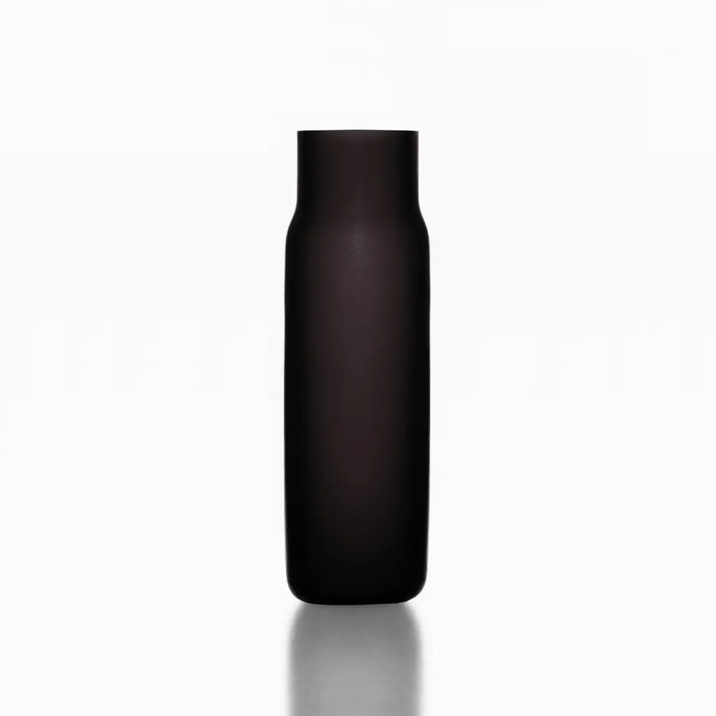 Tall black bandaska matte vase by Dechem Studio.Dimensions: D 9 x H 31 cm.Materials: glass.Available in 4 sizes: D15 x H25/ D18 x H24/ D9 x W31/ D22 x H33 cm.Available in black, uranium yellow, dark blue.Hand-blown into beech wood mold, this collection of Bandaska Vase features matte surfaces and is produced in three different shapes and electrifying colours. Can be well combined with classic Bandaska Vase too.We are DECHEM.We are Michaela and Jakub, designers and storytellers in Bohemian glass. Our work is based on contemporary design combined with a mastery of production and a healthy respect for old Central European craft and traditions.We design, produce and sell our collections of lights and decorative glass products. We produce unique light fixtures made from a combination of mouth-blown glass and handcrafted brass. Our glamorous chandeliers light up any space with a playful yet elegant appearance.A significant component of our work is blowing glass into a colour gradient. The wide range of fresh gradient colours is a distinctive feature of the Bandaska vase from our collection. It draws inspiration from traditional milk containers, well-known in Czech village households, and their elegant lines are now coming into modern homes in the form of our glass vases and lights.In addition to our normal production, we love to devise bespoke luminous objects for interiors. They arise from experimenting with unconventional materials and unusual combinations.Along with our own work, we like to be part of special collaborations and exhibitions. We have collaborated with renowned galleries and institutions, and curated and exhibited projects in Milano, London, Frankfurt, Istanbul and several other cities around the world.All of our creations are manufactured with care in Czech workshops using unique methods, including hand-blowing, snapping, cutting, grinding, firing, engraving and glass painting.We founded DECHEM studio in Prague in 2012 as partners in both work and life after years of studying glass craft and design, and we have grown it into a renowned and award-winning design studio.