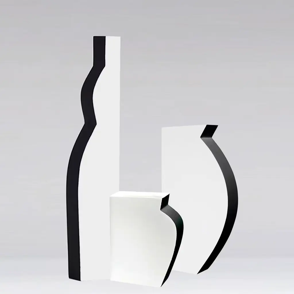 This elegant vase is part of the Pacay series and features a narrow body and a sinuous profile. The contemporary sensibility evident in the unique shape of the vase is enhanced by the use of colors, which were all hand applied using natural pigments. The black of the sides strikingly contrast with the white of the back and front, creating the illusion of two-dimensionality that is the characteristic of this series.