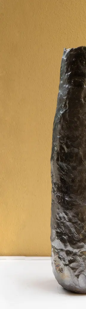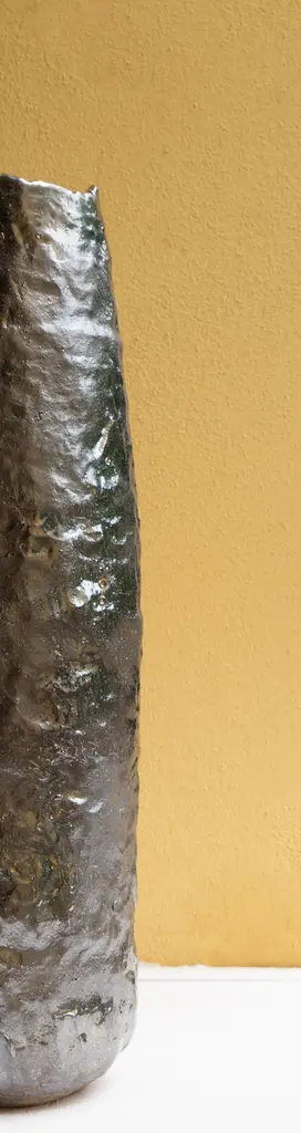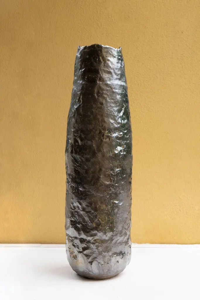 Tall silver bronze vase by Daniele GiannettiDimensions: Ø 63 x H 20 cm.Materials: Glazed terracotta. All pieces are made in terracotta from Montelupo, only fired once, then colored by Daniele Giannetti with a white acrylic base, and then a mixture of acrylic medium, water, and pigments. All vases are rigorously made by hand, without the help of any tool, in a way to express the primary connection between matter, which works a signifier and the deeper understanding of the relationship between humans and nature. These handmade objects subsequently become a new starting point for research into colors and pigments, using traditional materials to create new techniques.Daniele Giannetti is an artist with a background in product design and interior design.