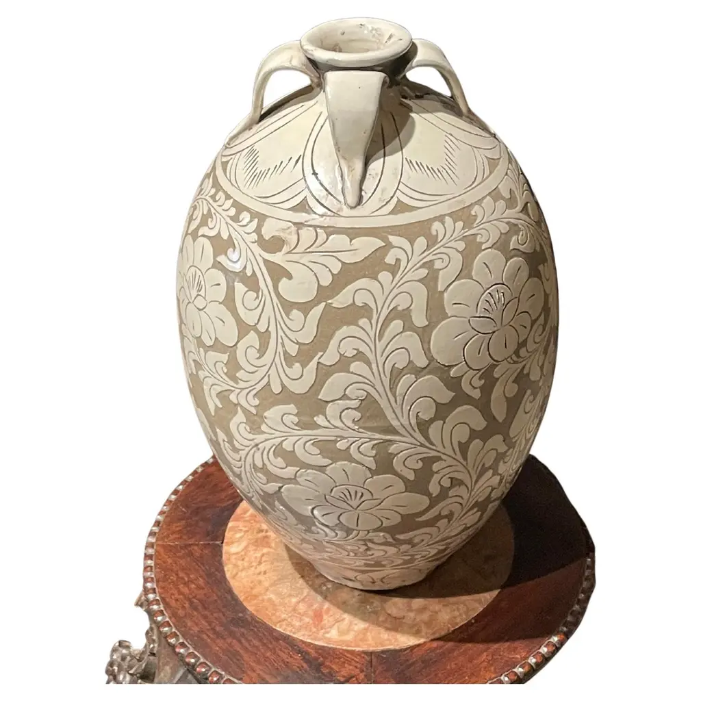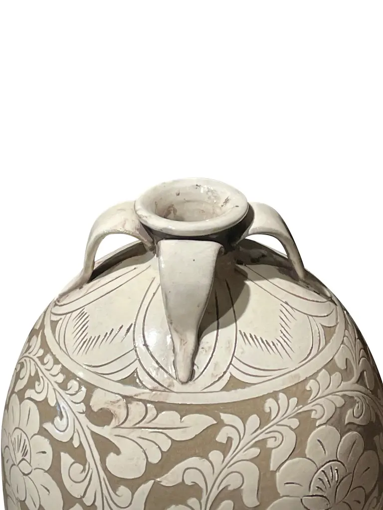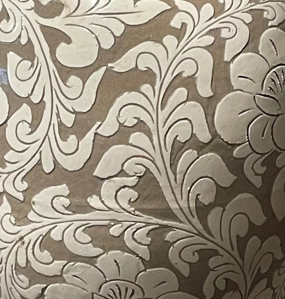 Tan With Cream Floral Pattern Vase, China, Contemporary